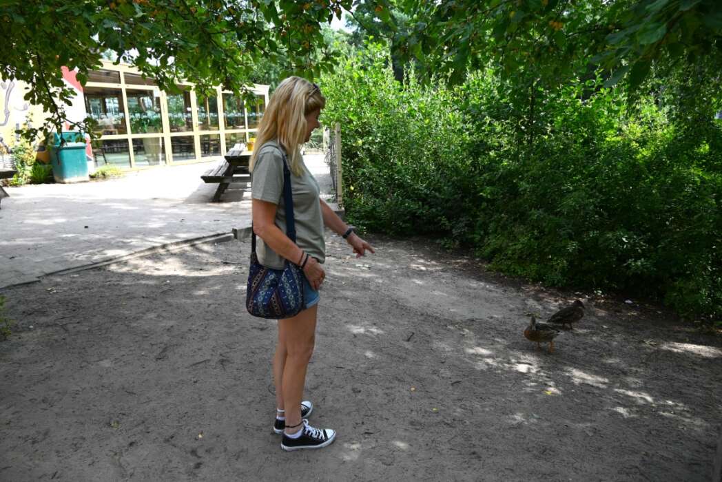 Halverwege maakten we een stop om een stukje door het park te wandelen. Overal dieren die je niet dagelijks ziet, maar Brigitte wordt helemaal enthousiast van een paar eenden. Als er zes mieren hadden gelopen was ze net zo enthousiast geworden, dat is denk ik dierenliefde ten top.