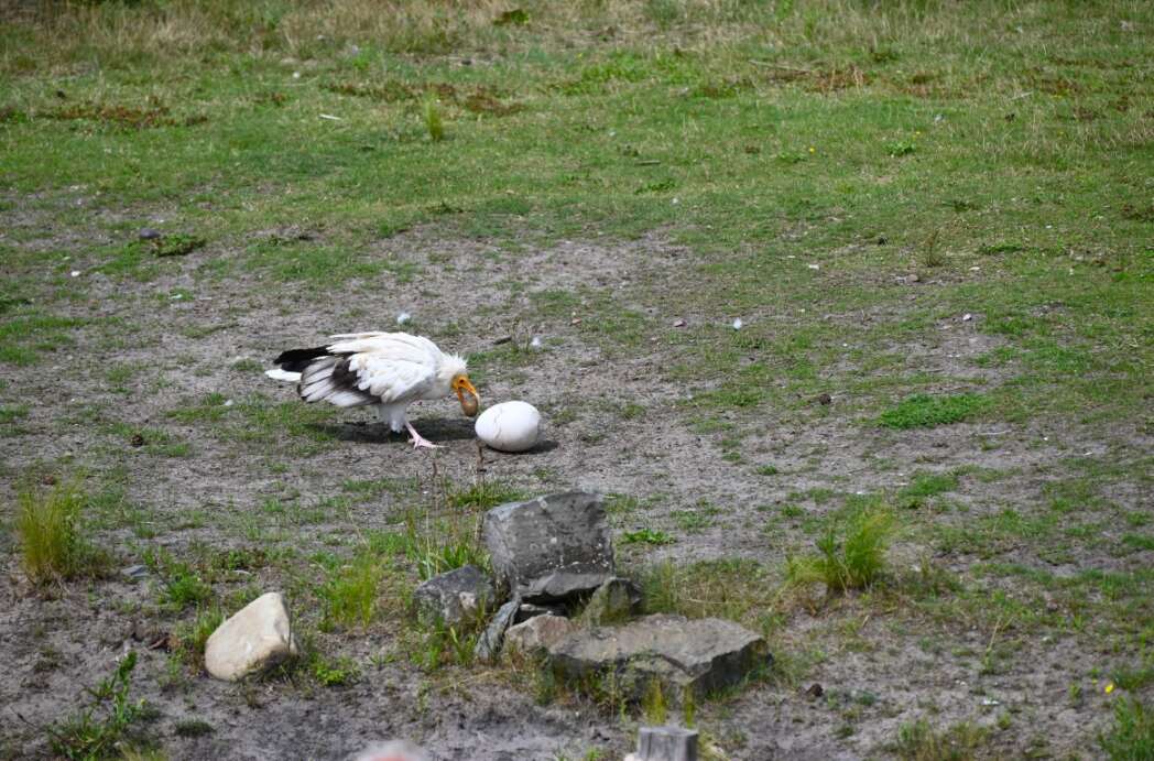 Wel leuk om te zien hoe een gier met een steen een ei openbreekt.