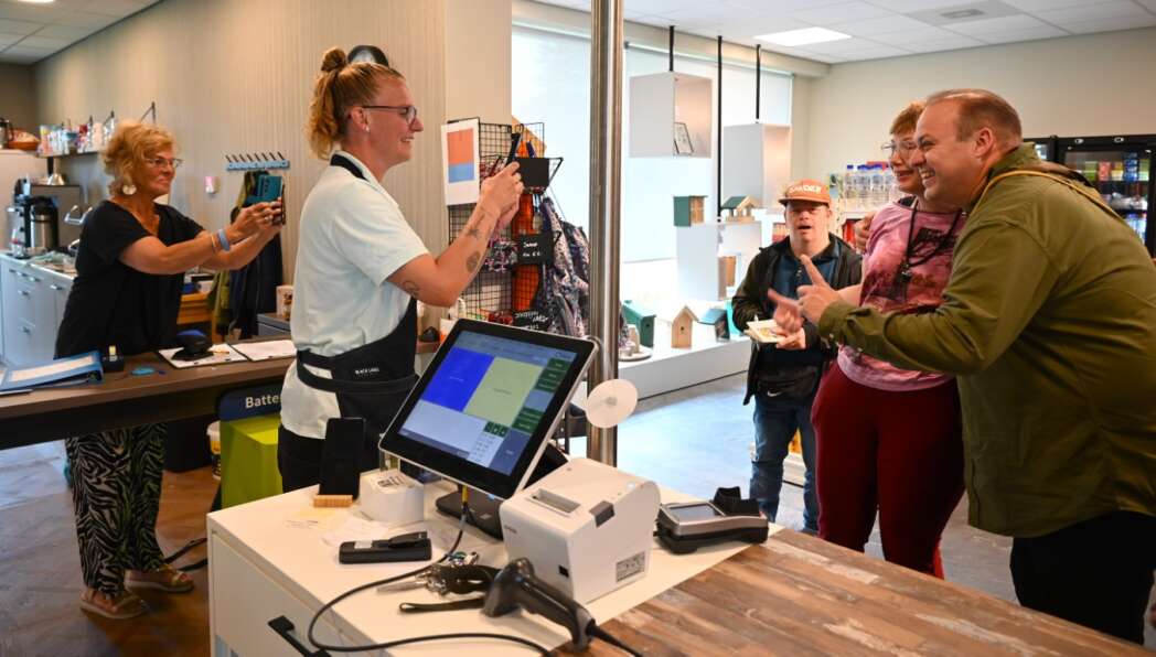 Voor Frans de studio in ging nam hij alle tijd om rond te kijken in onder andere de winkel van Gemiva en ging met iedereen op de foto.