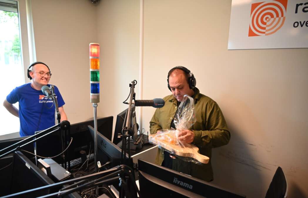 Ondertussen zat Christiaan Bauer te praten met de DJ’s van Radio Gemiva. Hij was vorig jaar te gast bij DJ Tim en had daar zulke goede herinneringen aan dat hij vandaag met zijn vader meegekomen was.