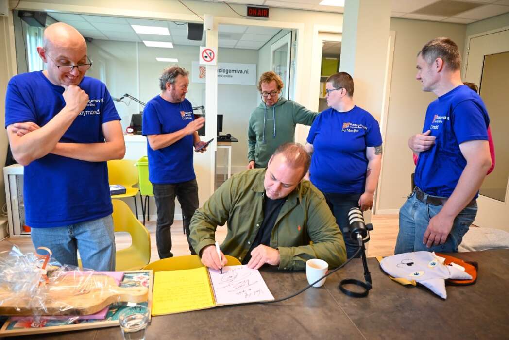Het duurde even voor hij weg kon, want ook DJ Marijke wilde nog met hem op de foto en op de gang stonden nog meer fans te wachten.
