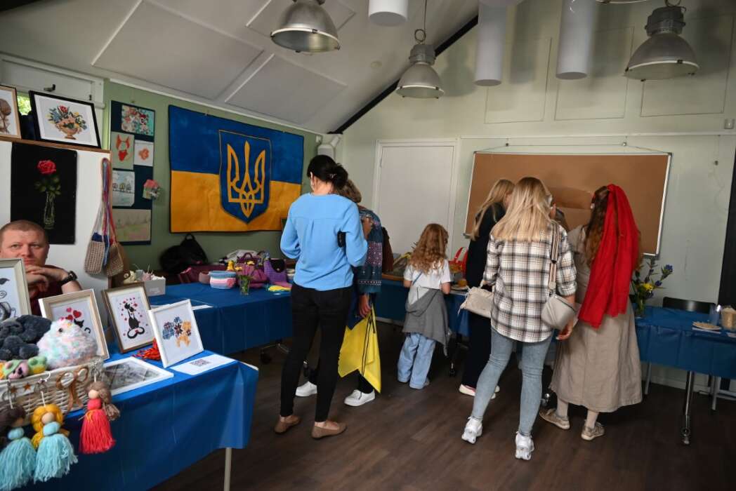 In de speeltuin was een Oekraïens sfeertje ingericht met hapjes, drankjes en kunstwerkjes.