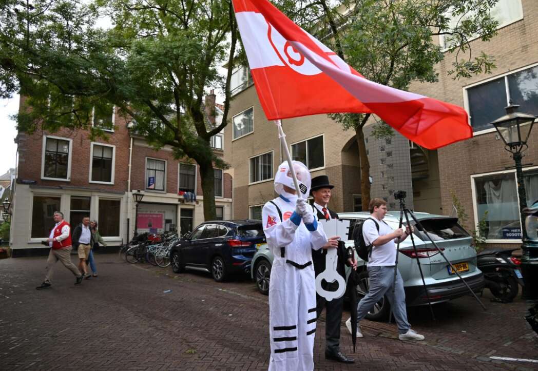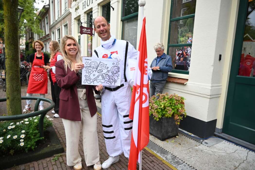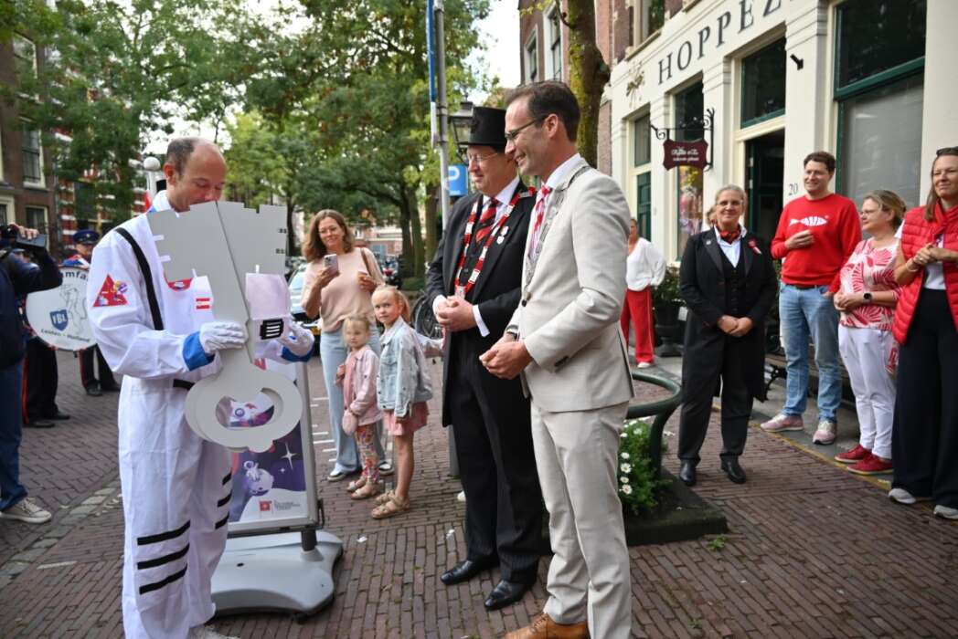 De astronaut maakt zich klaar voor zijn missie naar Mars maar kwam nog even langs Leiden om de sleutels te brengen.