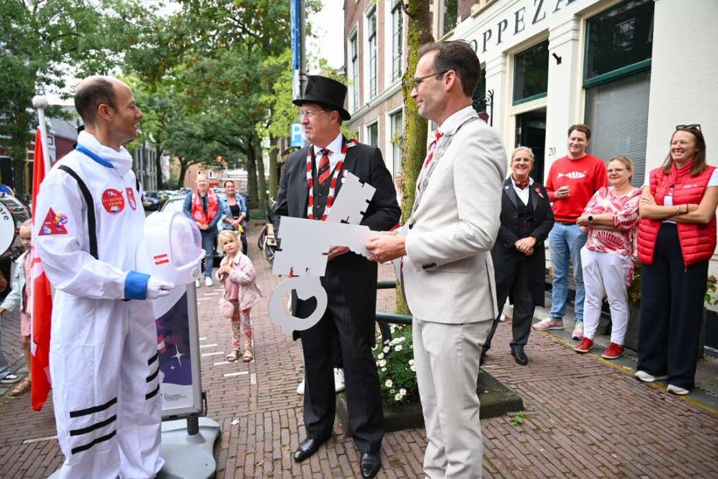 Het 3 October Servicepunt is zaterdagmorgen feestelijk geopend en geheel in stijl met het thema van dit jaar. De Leidse Sleutels werden gebracht door astronaut Lodewijk Wisse.