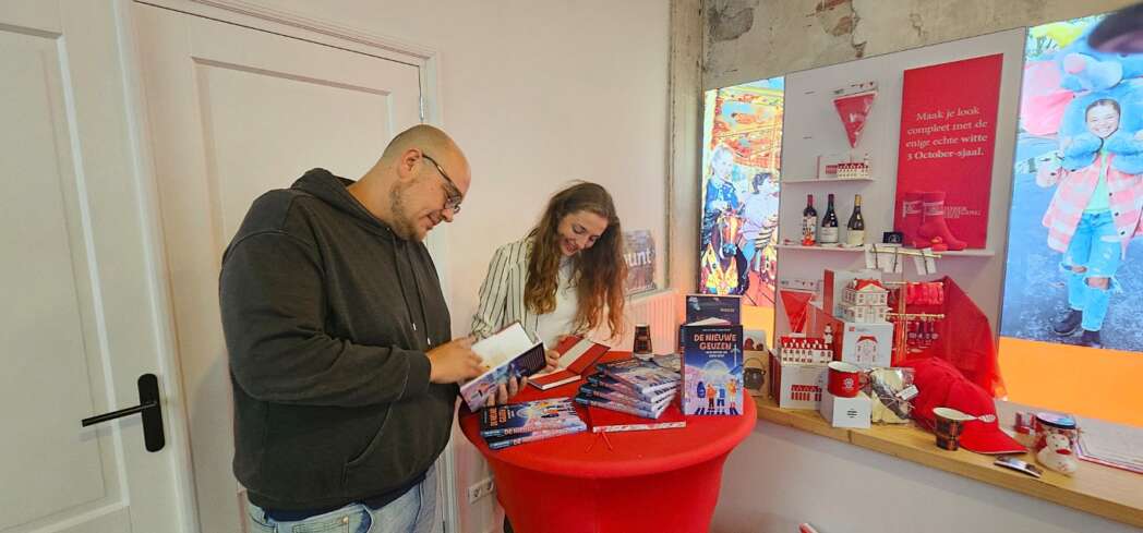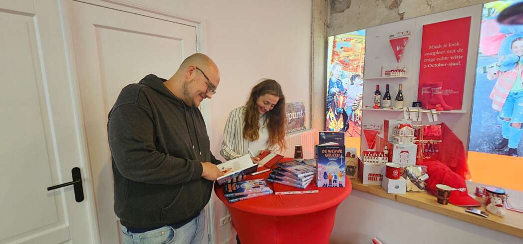Uiteraard zijn er ook veel boeken over 3 October te koop en regelmatig zijn de schrijvers aanwezig om te signeren. Vanmiddag waren Lisanne Brouwer en Mark van Egmond aanwezig om te signeren en uitleg te geven over hun boek en musical De nieuwe geuzen’.