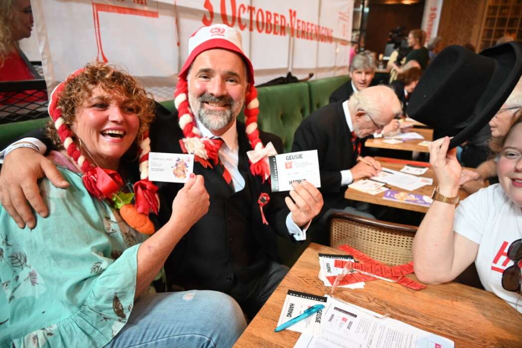 Het inschrijven voor Haring & Wittebrood is al een feestje op zich en veel Leidenaren komen zich dan ook rood-wit gekleed inschrijven.
