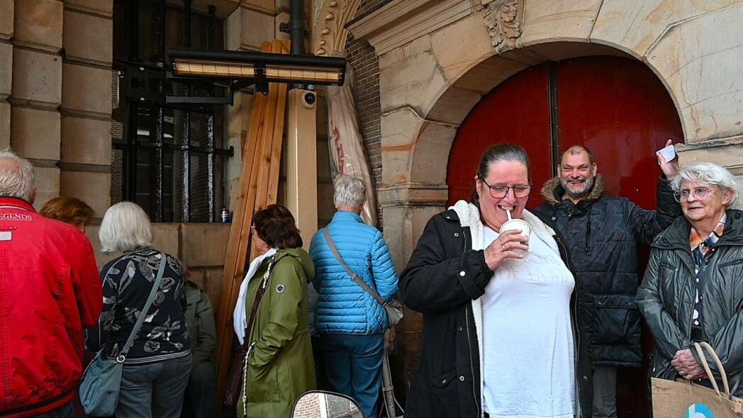 Er staat al snel een rij tot voorbij Hotel Nieuw Minerva.