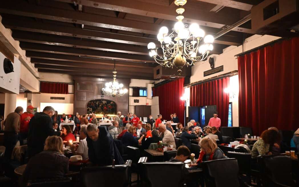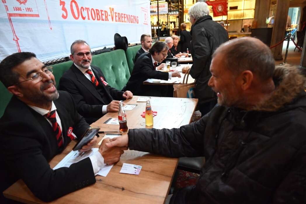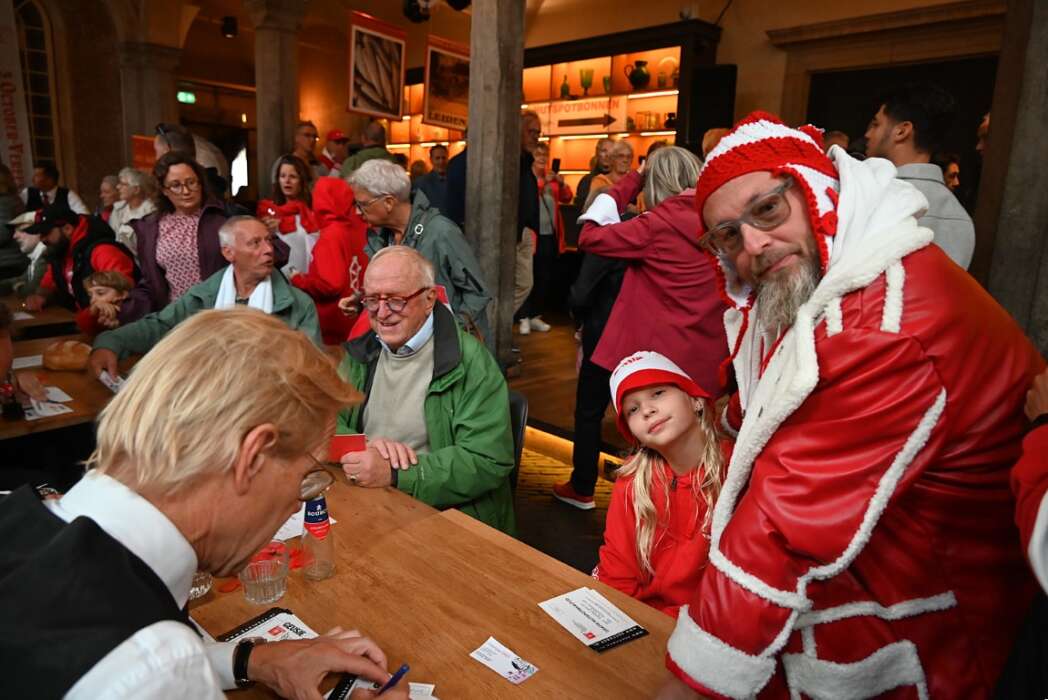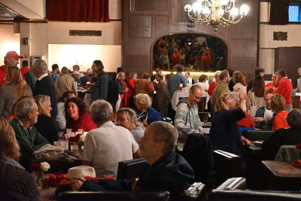 Het inschrijven is al een feestje op zich en veel mensen zijn dan ook al rood-wit gekleed.