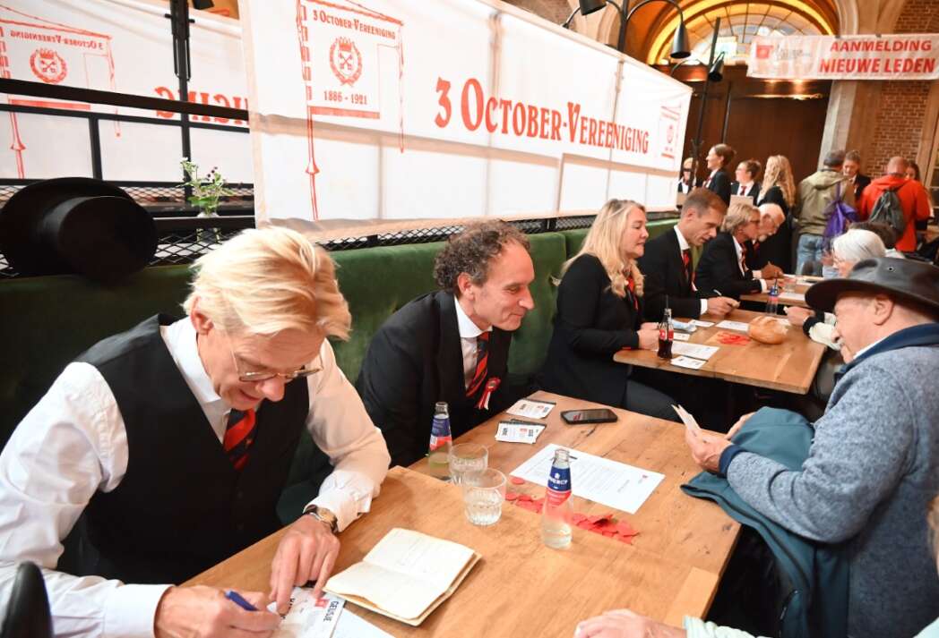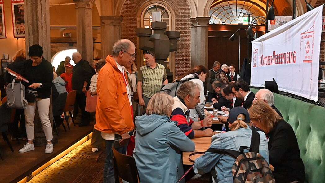 Nadat in de Waag de inschrijving was gesloten kwamen een aantal bestuurs- en commissieleden van de 3 October Vereniging ook nog even naar Minerva.