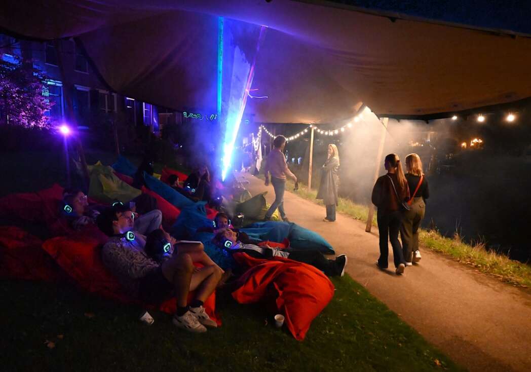 Even relaxen bij silent disco en een lichtshow.