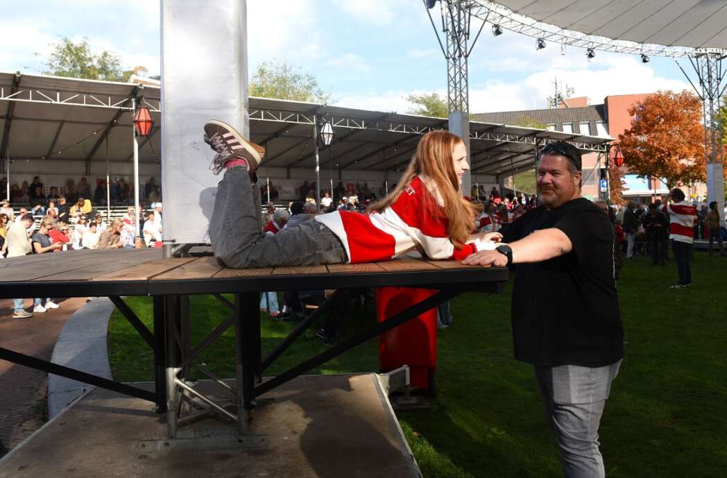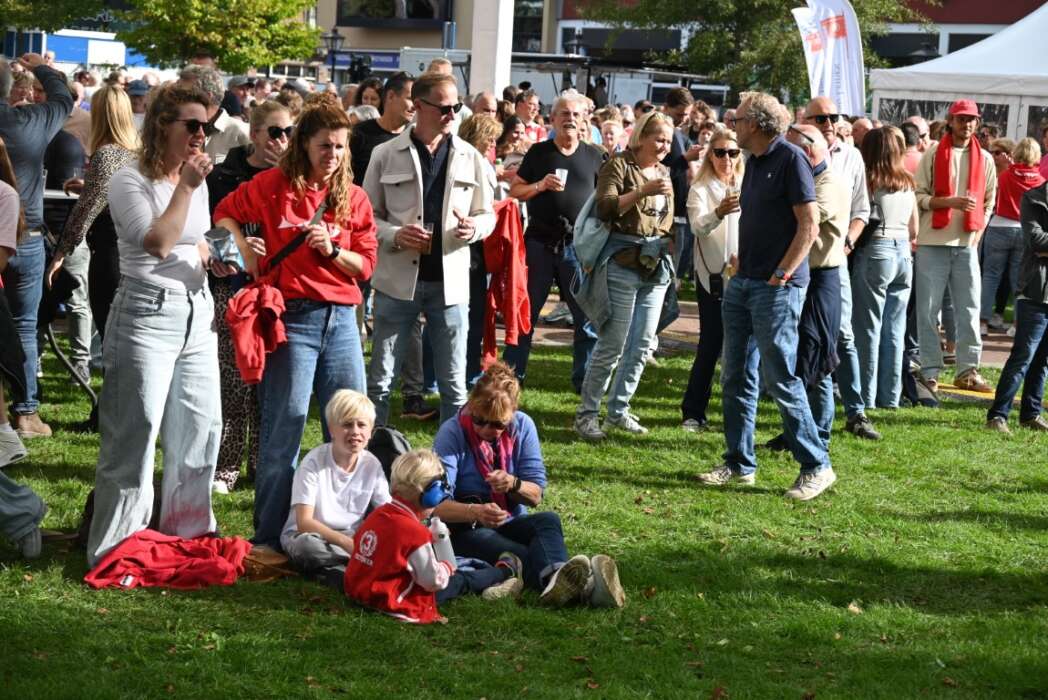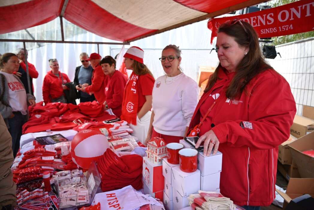 Veel bezoekers kwamen in rood-wit en wie het niet had kon het natuurlijk nog kopen.