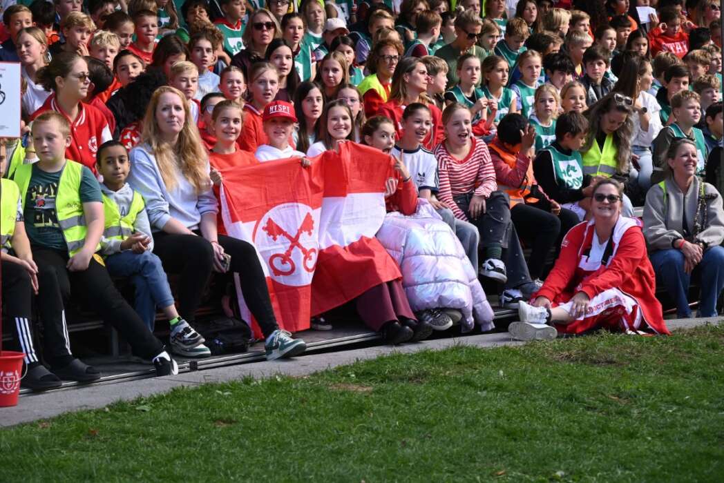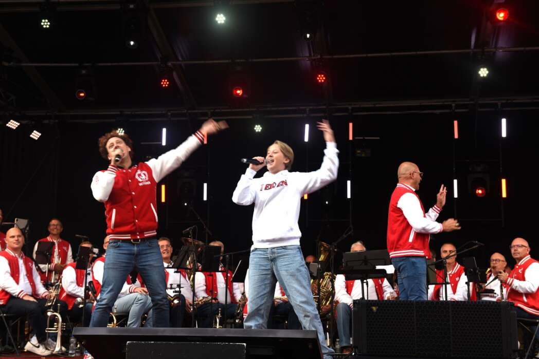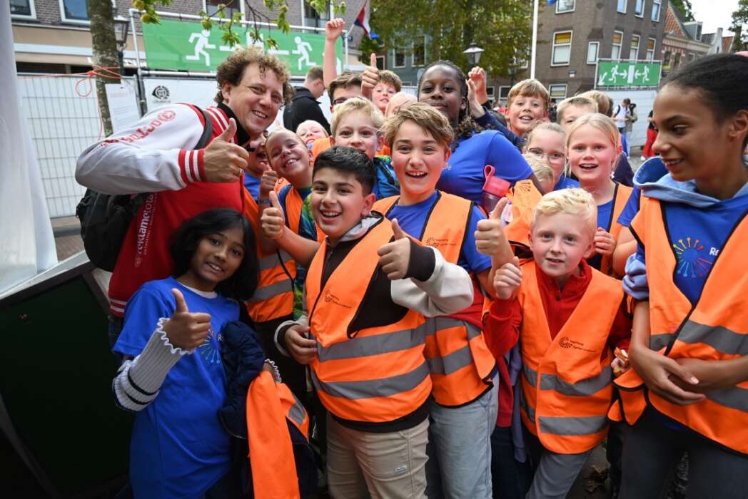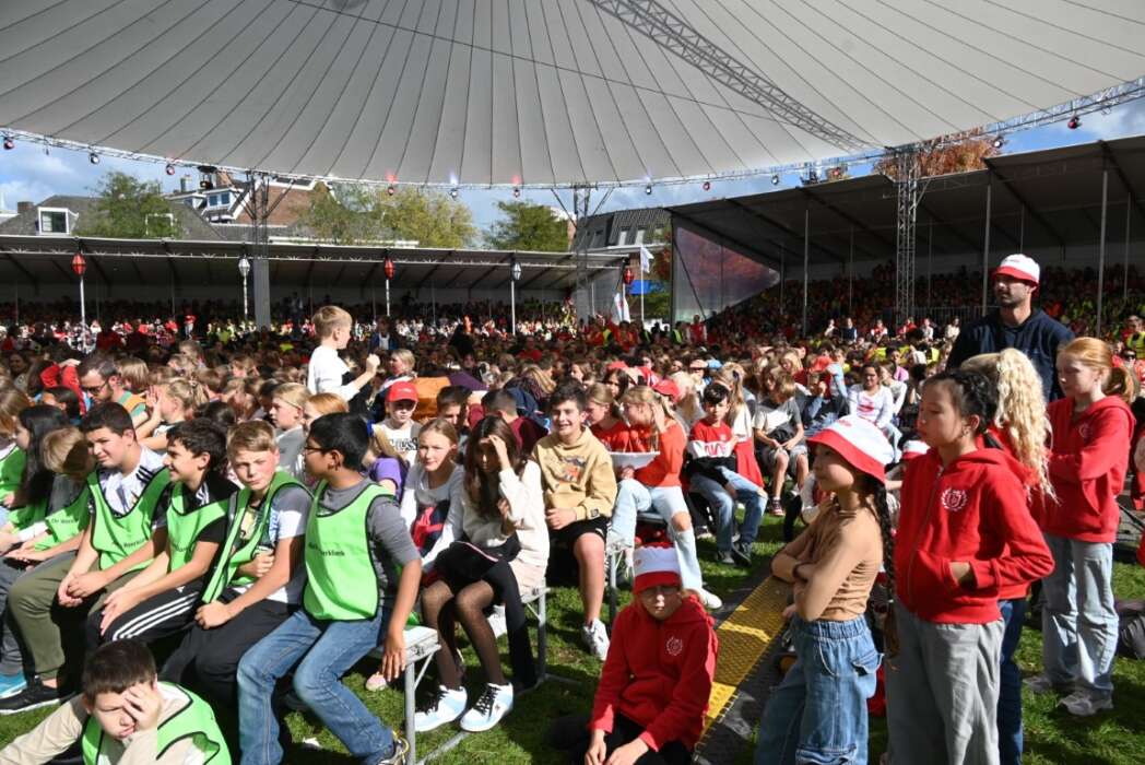 Tot slot werd massaal op het veld en het podium het Wilhelmus gezongen. Er was ooit een landelijk politicus die vond dat op scholen het Wilhelmus moest worden geleerd aan de kinderen. Dat is in Leiden niet nodig, vrijwel alle kinderen zongen keurig mee.