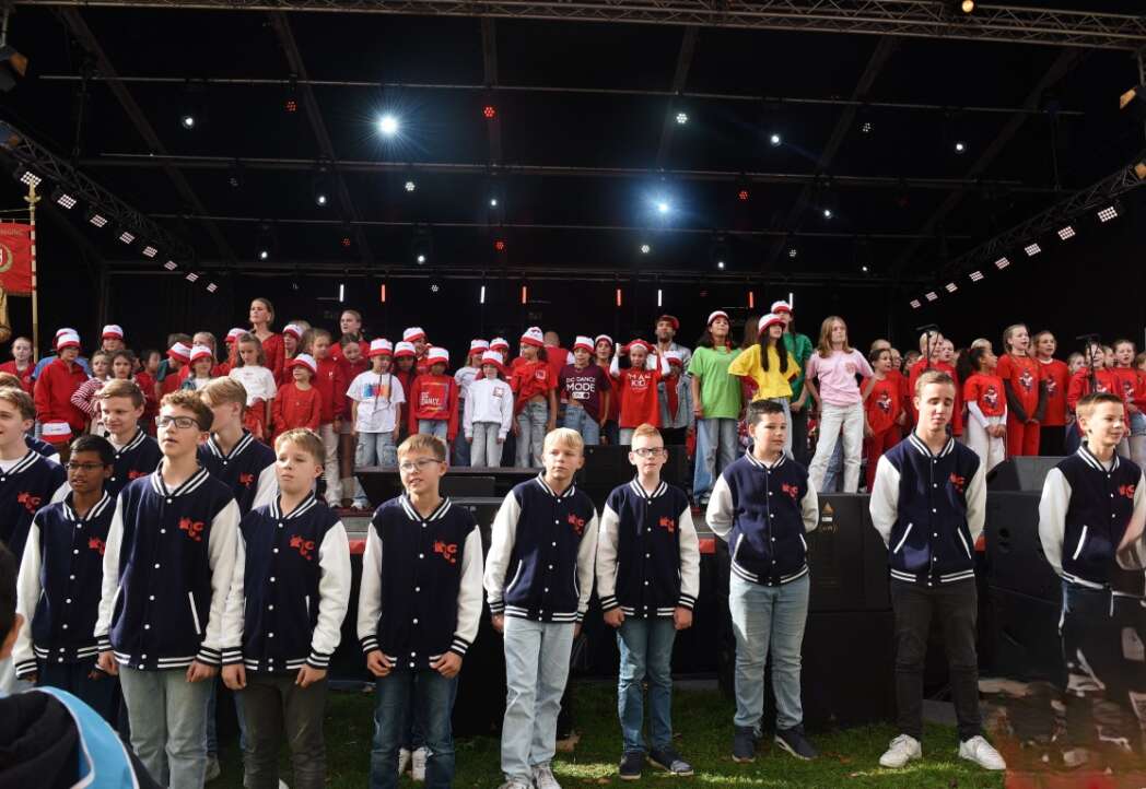 Het Minikoraal blijft een van de mooiste 3 October evenementen en laat zien dat 3 October bij jong en oud leeft. Het Garenmarktplein zat weer afgeladen met leerlingen uit de groepen 7 en 8 uit Leiden, Voorschoten, Zoeterwoude en Leiderdorp.