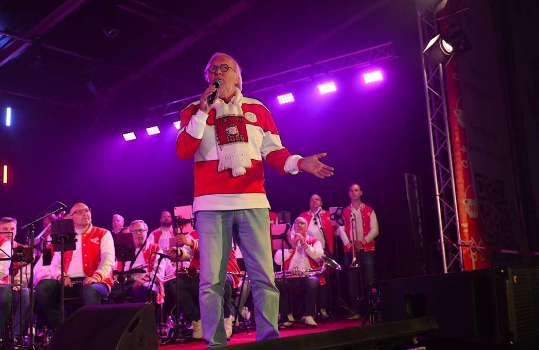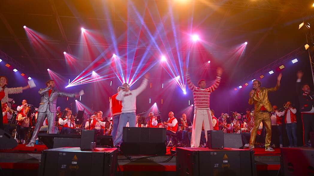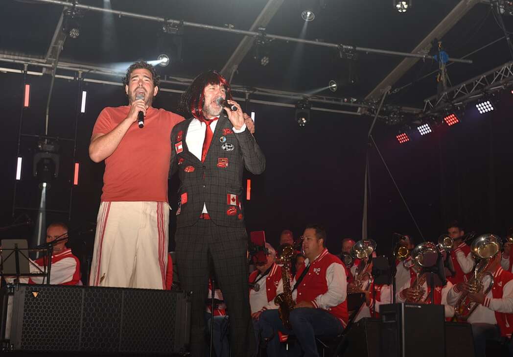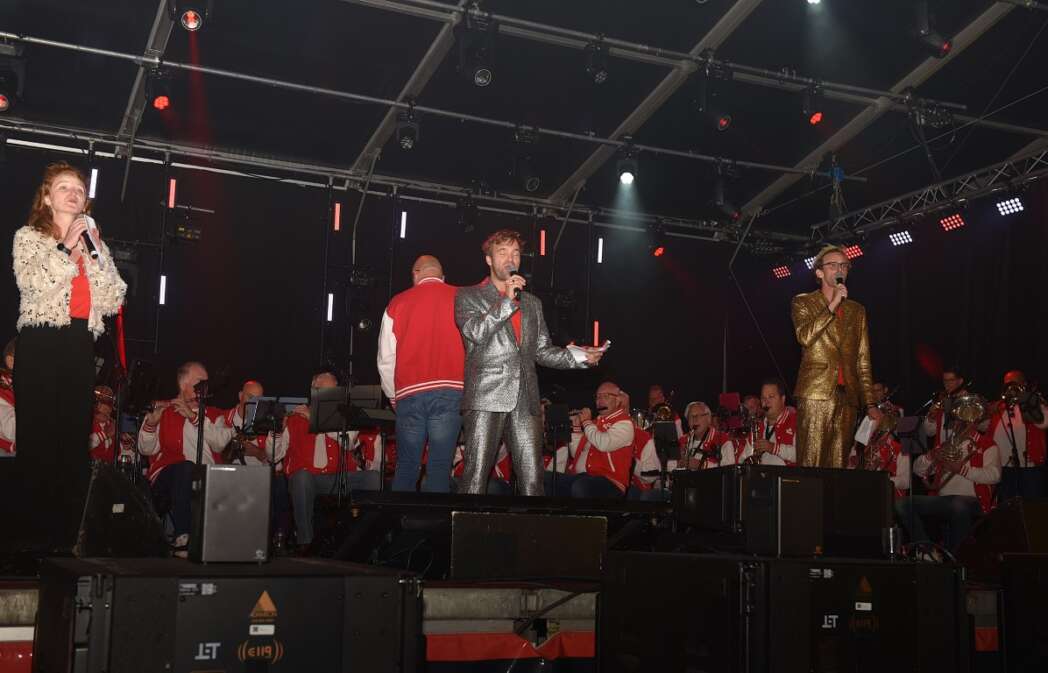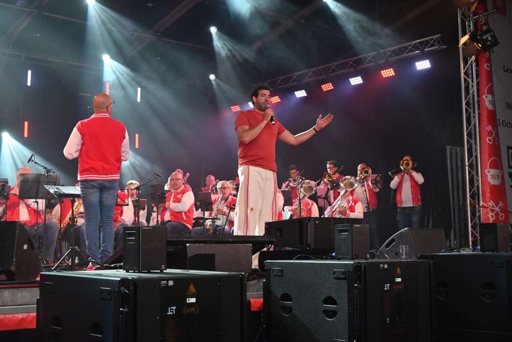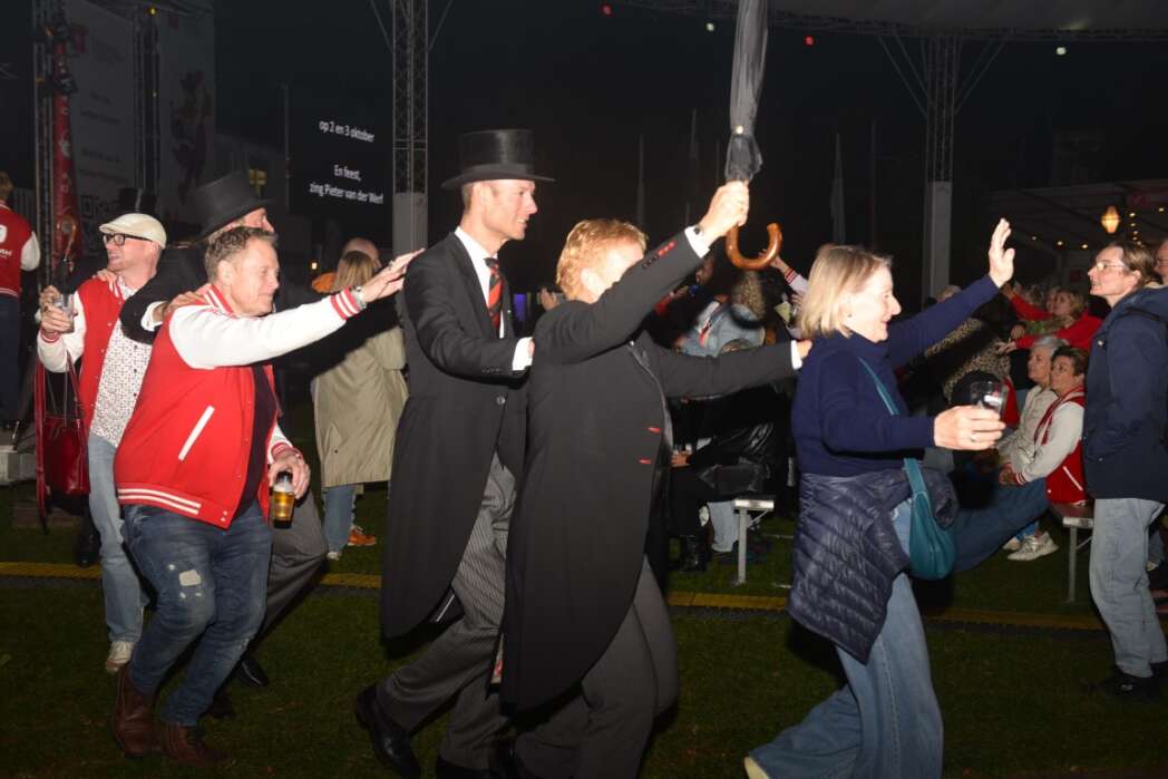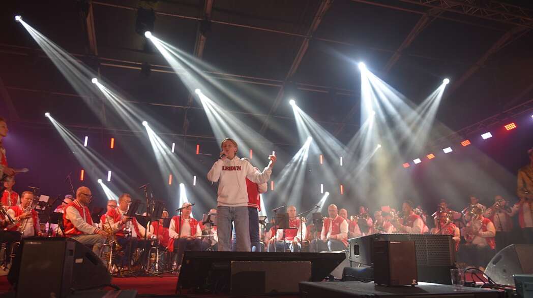 Het slot was voor Chris Juffermans met het nummer La la la Leiden. ’s Middags zong hij het nog met Jochem Myjer, vanavond moest hij het alleen doen.