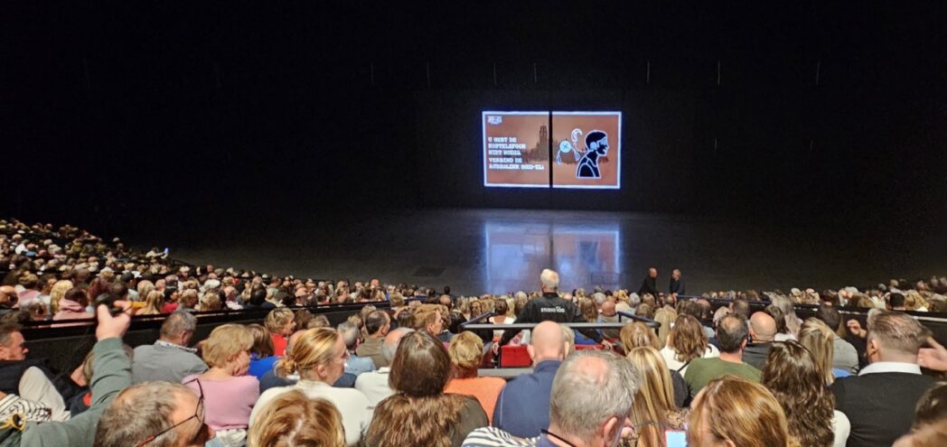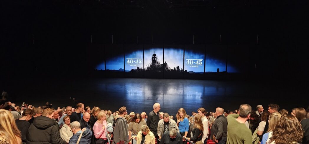 Uiteraard mocht er tijdens de voorstelling niet gefotografeerd worden, dus was niet van plan er een blog van te maken. Alleen omdat ik toch de trailer van 40-45 graag wil delen, want die is echt mooi en het gebeurt ook zo als in de trailer, schrijf ik er maar iets omheen 🙂 We waren niet de enigen die naar de voorstelling gingen.