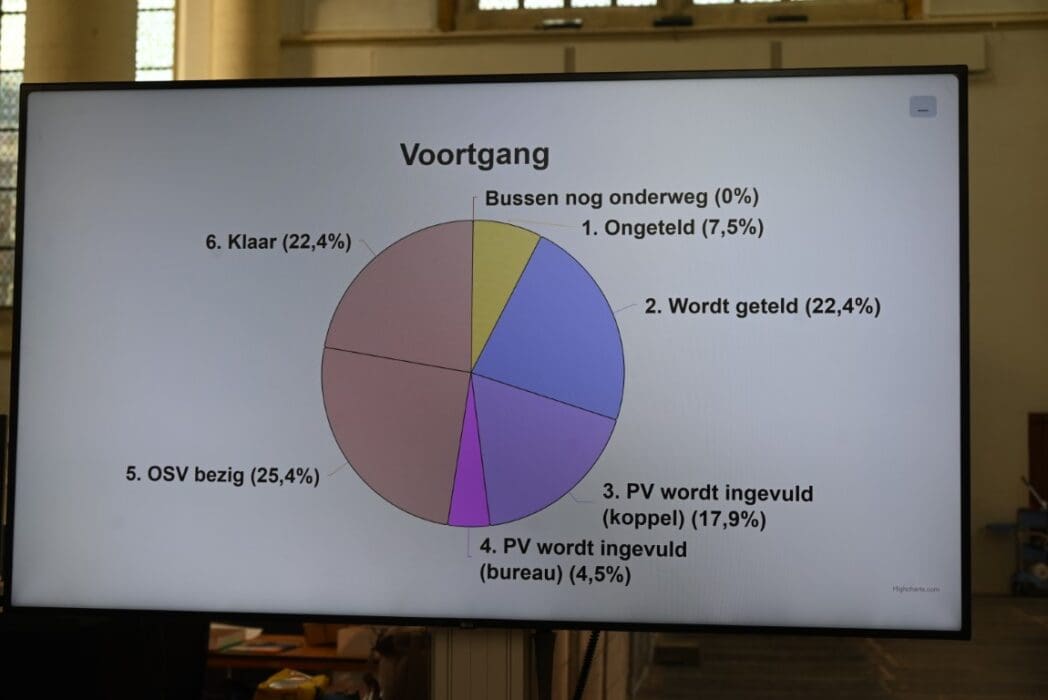 Op een scherm werd bijgehouden hoever ze waren.