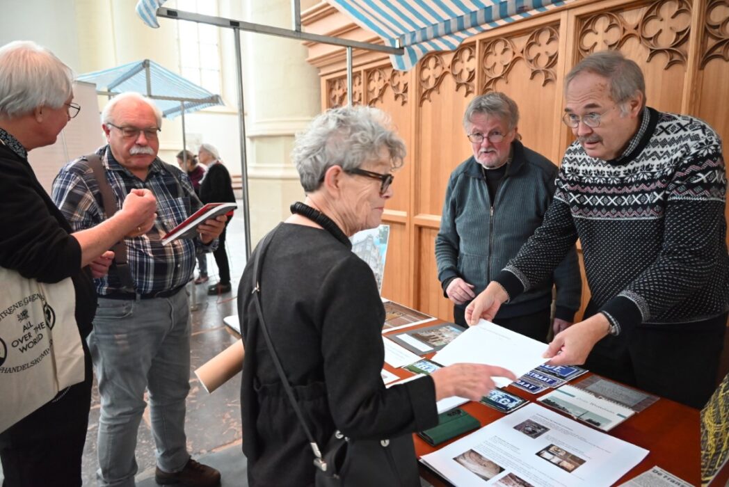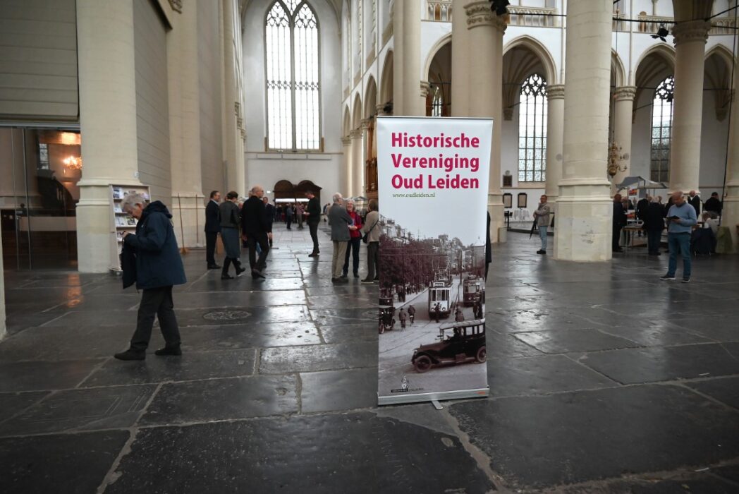 In de kerk was ook een informatiemarkt met boeken en andere informatie over historisch Leiden.