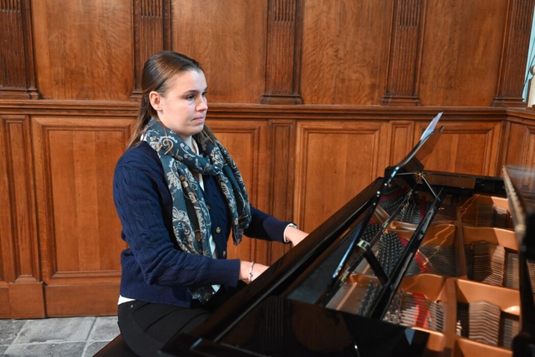 De pianiste zat al klaar om het Leids Volkslied te spelen.