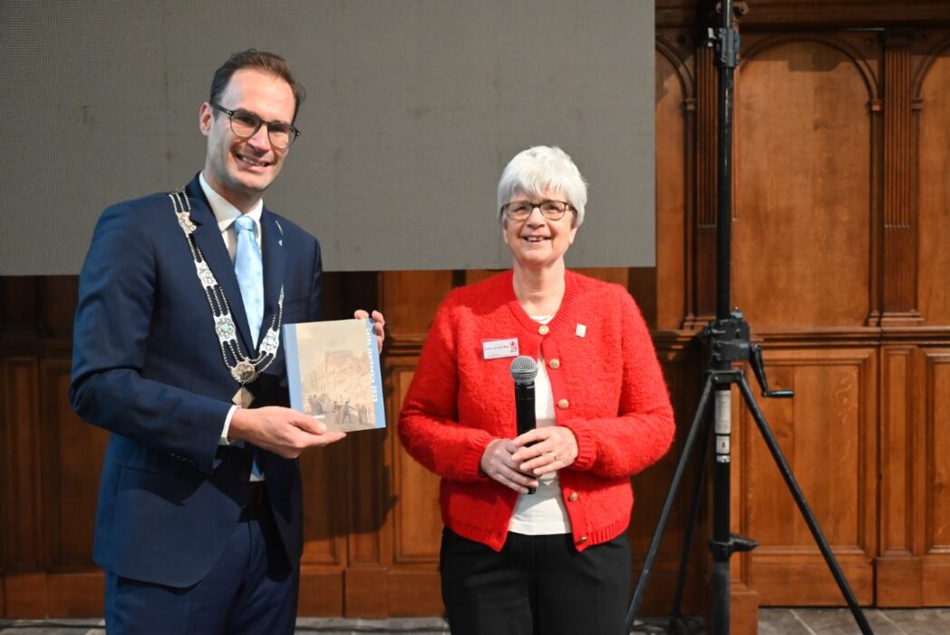 Na de lezing mocht Jaak Slangen het Jaarboekje overhandigen aan de burgemeester.