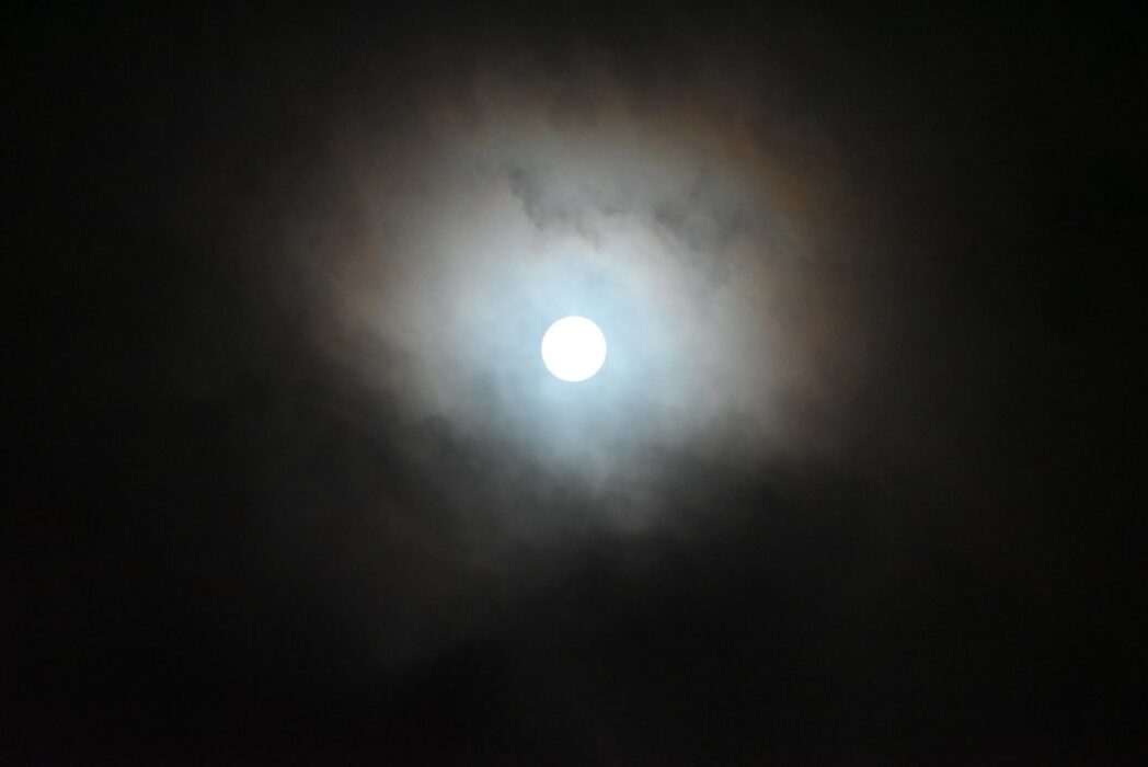 Ik hoorde al een paar dagen dat er deze week een supermaan te zien was. Fotograferen doe ik hem nooit want heb niet het geduld om mijn camera in te stellen, maar ik keek wel even of ik de supermaan zag. Het was uiteraard bewolkt want dat is het altijd met dat soort dingen. Maar door de bewolking heen zag ik iets wat me nooit eerder opgevallen is, het leek wel blauw om de maan heen.