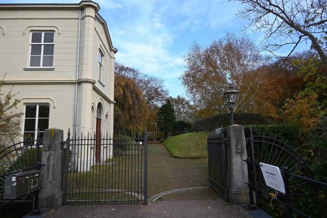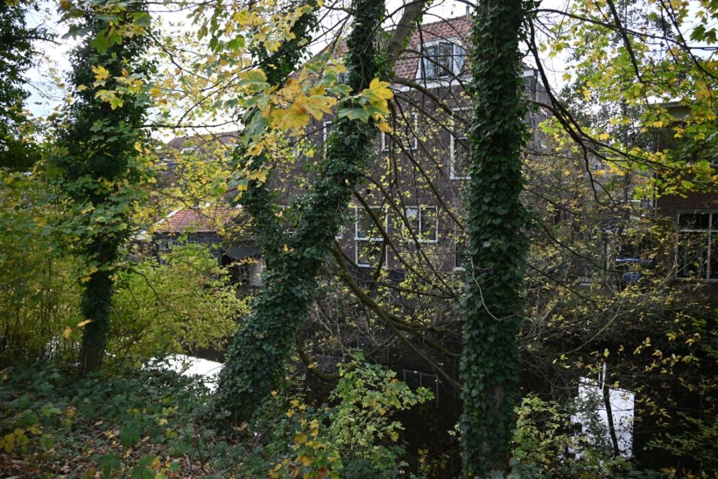 Aan alle kanten van de begraafplaats heb je mooie doorkijkjes, rondom zijn huizen maar ook de Rijn en en de Zijlsingel.