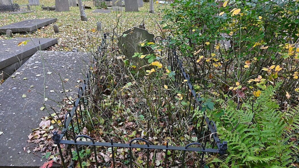 Je gaat natuurlijk niet staan lachen op een begraafplaats, toch moest ik inwendig even lachen bij dit graf. Opeens moest ik denken aan hoe cabaretier Harry Jekkers duidelijk maakt dat iemand overleden is. ‘Hij heeft een tuintje op zijn buik’.
