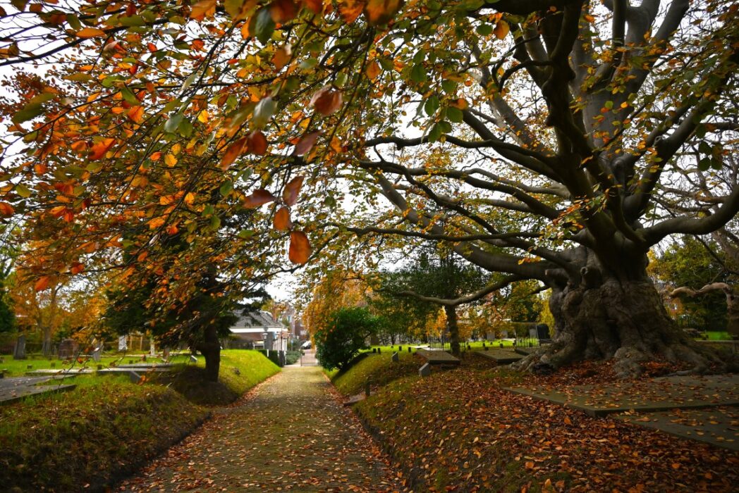 De begraafplaats is altijd mooi, maar in de herfst is het helemaal prachtig. Dat zeg ik natuurlijk ook als het ooit weer eens echt sneeuwt 🙂