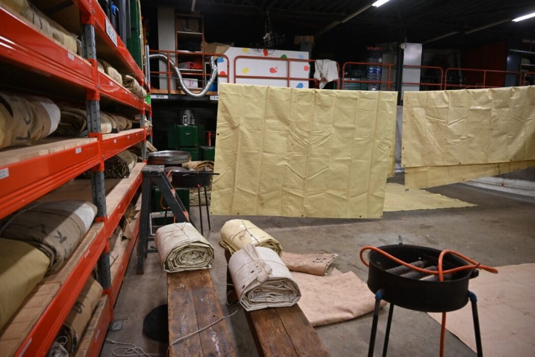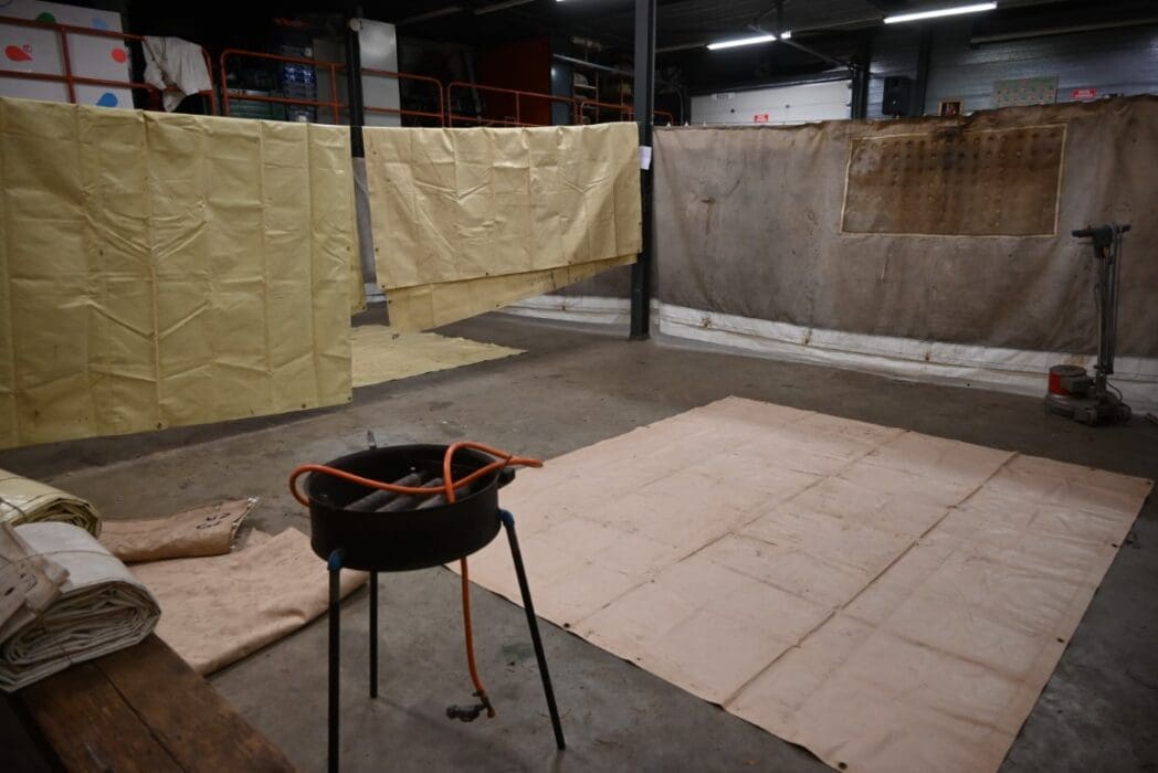 De grondzeilen van de laatste kampen hingen nog te drogen.