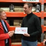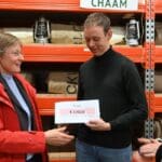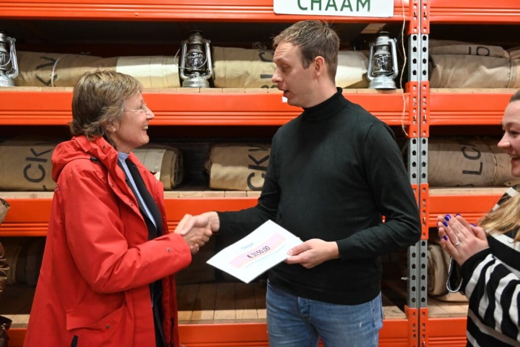 Ze overhandigde een cheque van € 3,150 voor het Kortingsfonds van de LCKV. Penningmeester Erwin van Eijk was duidelijk onder de indruk.