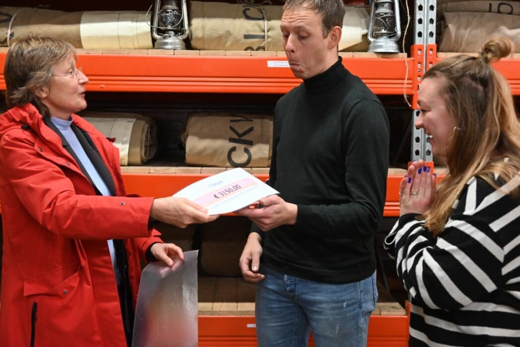 Maandag gingen een paar leden langs bij de LCKV om de vereniging te verrassen met de opbrengst van de collecte.