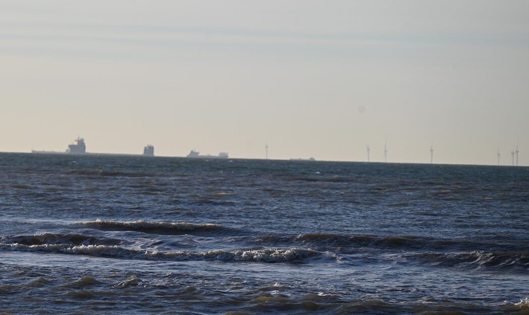 De Noordzee is een parkeerplek van schepen en de windmolens, mooie techniek maar niet wat het ooit was.