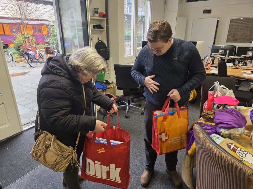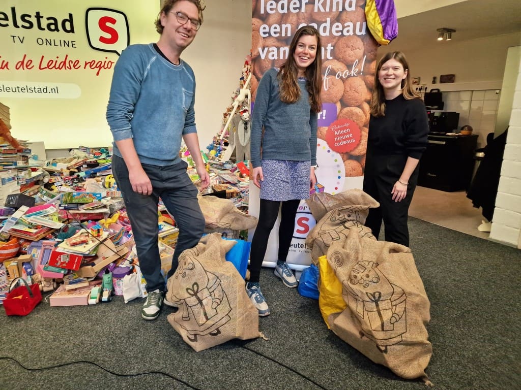 De hele dag door komen er mensen langs om cadeautjes te brengen. De studio is vanavond nog tot 23.00 uur open en morgen is de laatste dag vanaf 09.00 uur. Dus kom langs en steun deze actie. Er komen ook veel organisaties, bedrijven en politieke partijen langs, zoals bijvoorbeeld Leiden Marathon, Zorg & Zekerheid en Astellas.