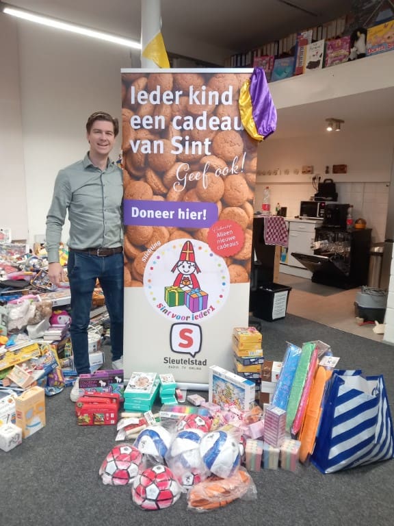 Update 11.30 uur. De zon schijnt niet alleen buiten, maar ook binnen bij Omroep Sleutelstad. Er komen stromen cadeautjes binnen. Was er gisteren nog de hoop of voorzichtige verwachting dat we het waanzinnige aantal van vorig jaar gingen evenaren. Nu is de vraag hoe laat gaan we over het aantal van vorig jaar heen. Update 2 die laatste vraag is al beantwoord en we zijn zojuist gigantisch ruim over het aantal van vorig jaar heen gegaan. Kijk op Sleutelstad TV om het live te kunnen volgen en omstreeks half zes maken we de einduitslag bekend. Ondanks de regen loopt het al een paar dagen storm bij Omroep Sleutelstad voor de actie Sintvoorieder1. Het is echt hartverwarmend als je ziet hoeveel mensen en bedrijven langs komen om de actie te steunen. De berg cadeautjes groeit per uur. Vrijdag kan er ook nog de hele dag worden ingeleverd bij Omroep Sleutelstad Middelstegracht 87A.