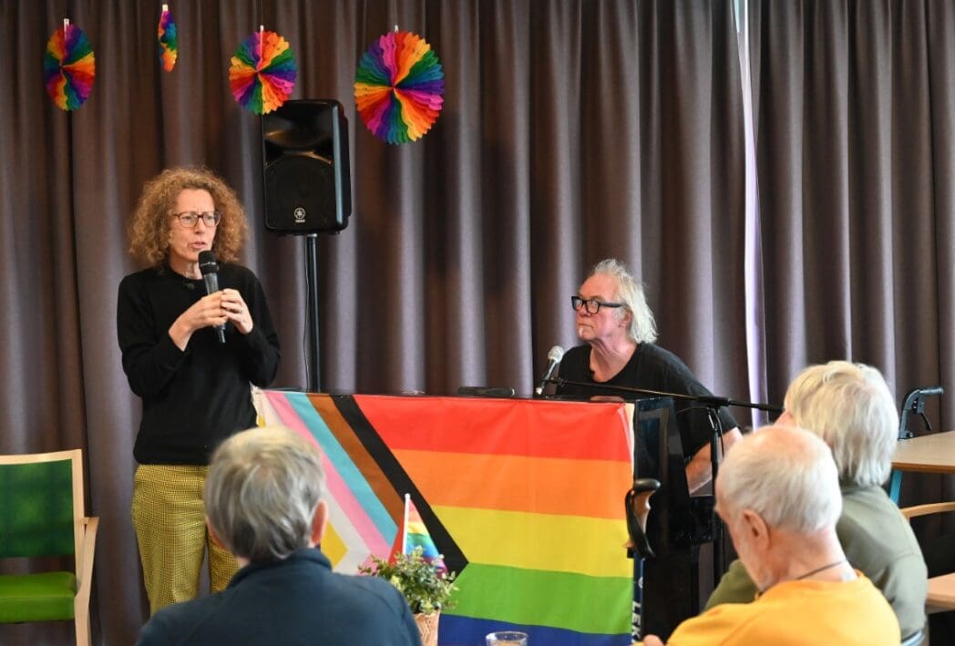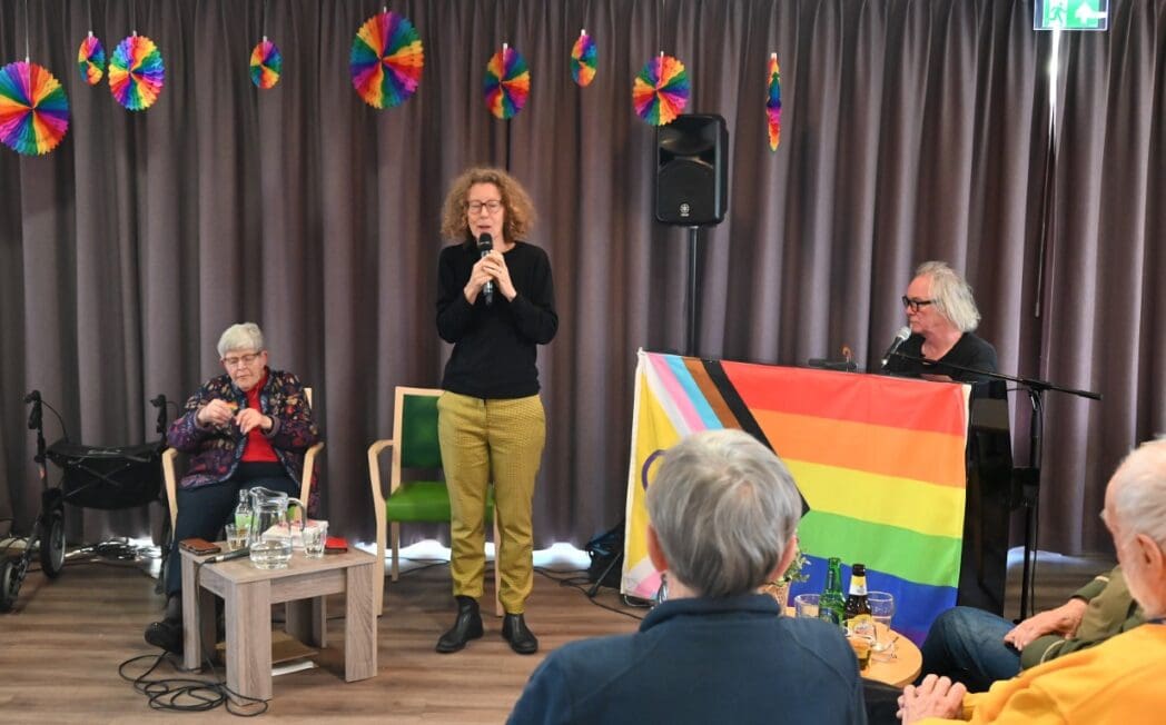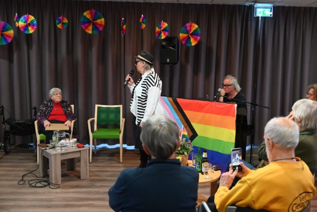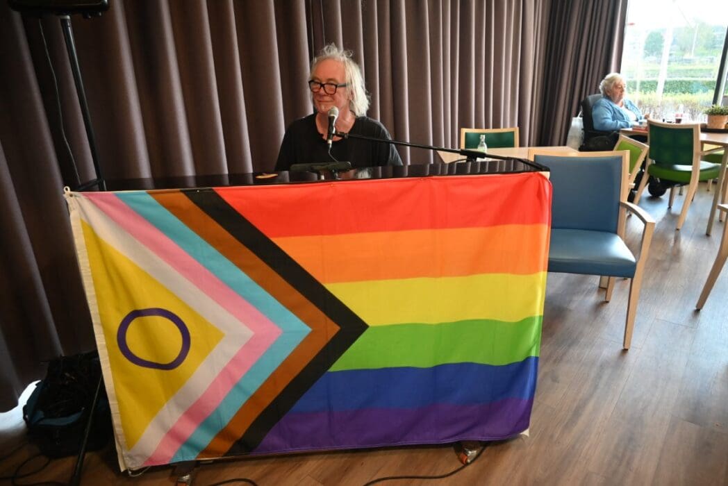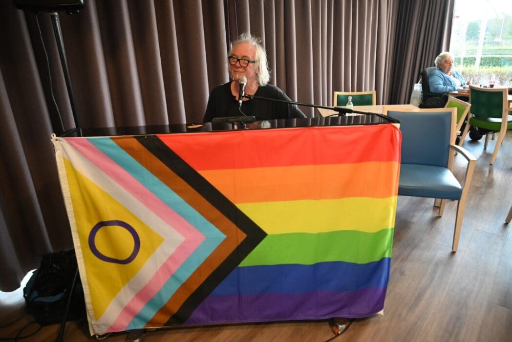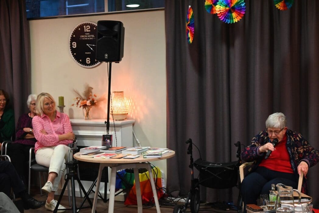 Ik zeg het eerlijk, ik kwam met het idee een half uurtje te blijven om een indruk te krijgen en wat foto’s te maken. De 88 jarige Magda Römgens begon net met haar verhaal. Ik ken Magda als ambassadeur van Oud Roze, oudere LHBTI-ers, maar haar levensverhaal had ik eigenlijk nooit echt gehoord. Ik werd direct gegrepen door het verhaal en ook het optreden van pianist/zanger.componist Guus Westdorp zorgde ervoor dat we tot het eind bleven.