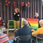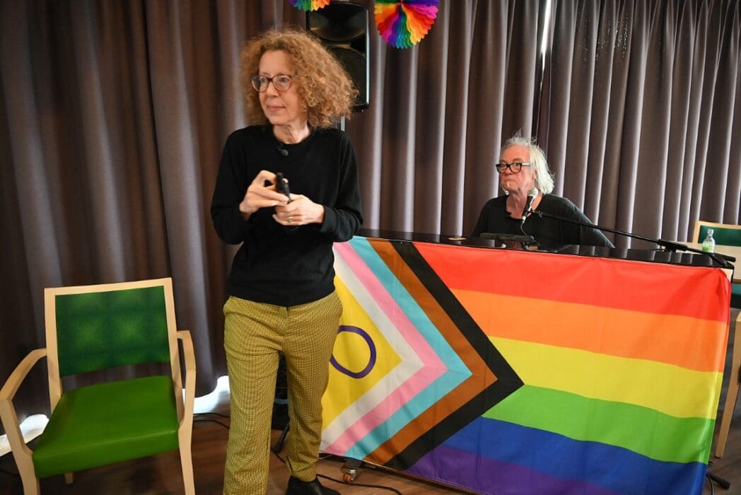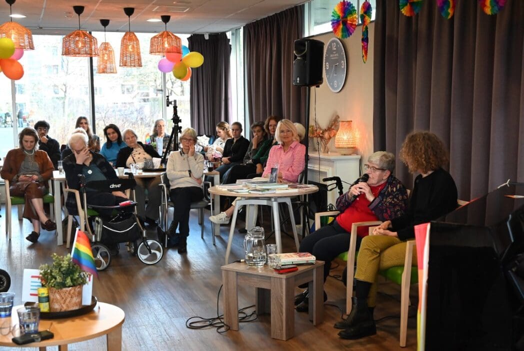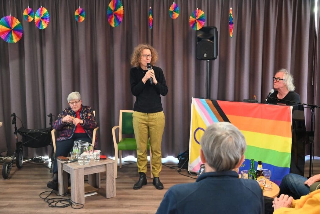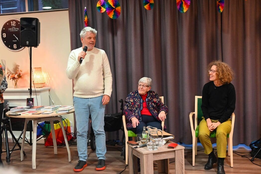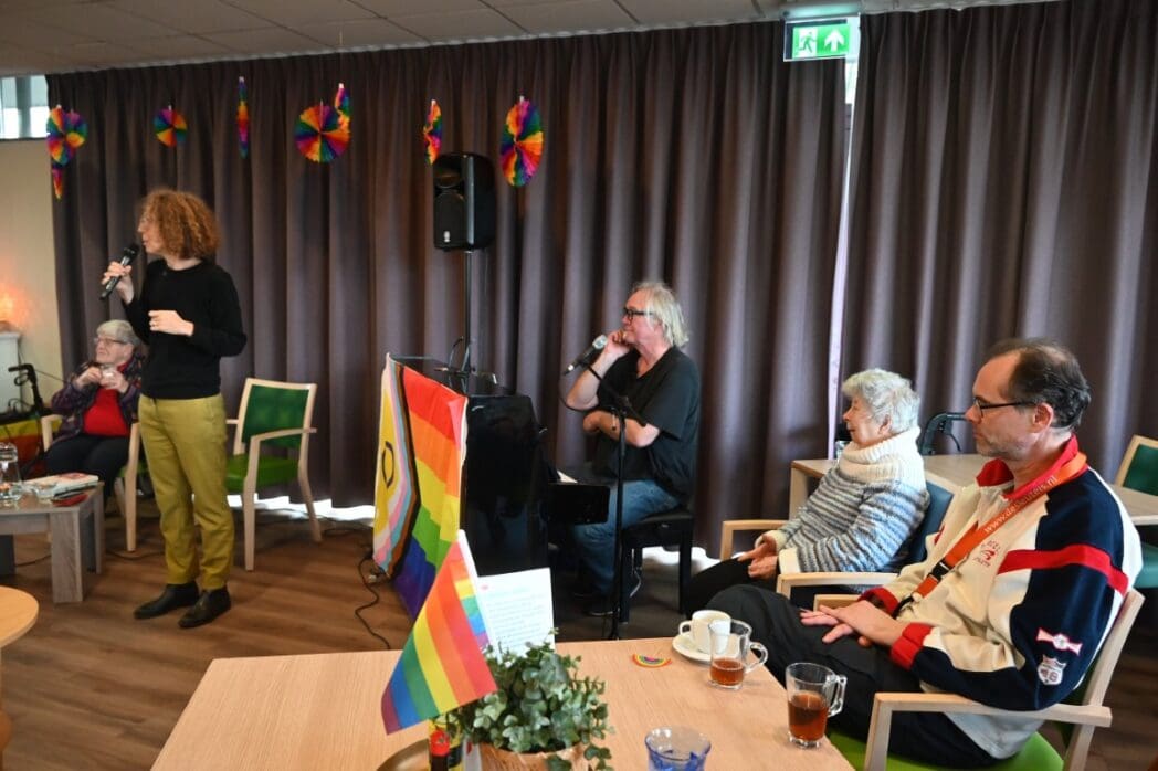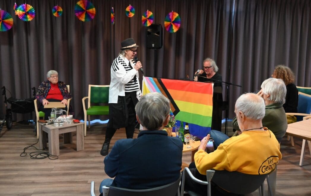 Ik zeg het eerlijk, ik kwam met het idee een half uurtje te blijven om een indruk te krijgen en wat foto’s te maken. De 88 jarige Magda Römgens begon net met haar verhaal. Ik ken Magda als ambassadeur van Oud Roze, oudere LHBTI-ers, maar haar levensverhaal had ik eigenlijk nooit echt gehoord. Ik werd direct gegrepen door het verhaal en ook het optreden van pianist/zanger.componist Guus Westdorp zorgde ervoor dat we tot het eind bleven.