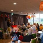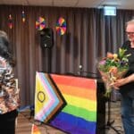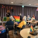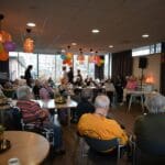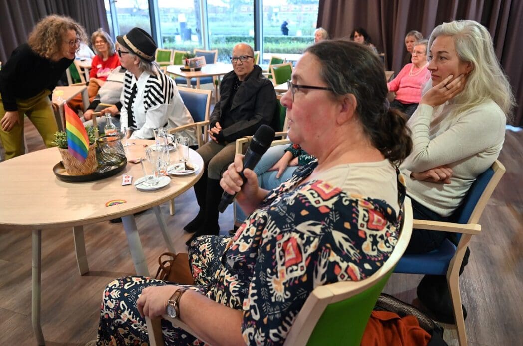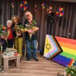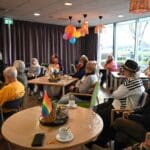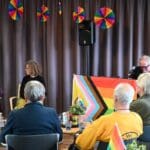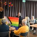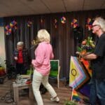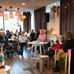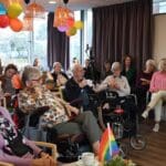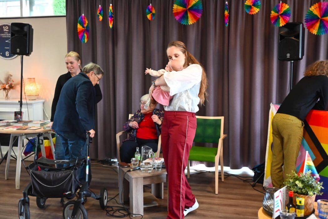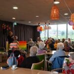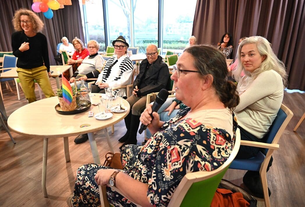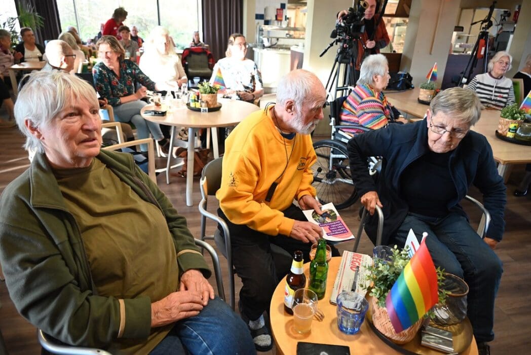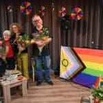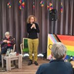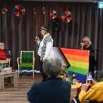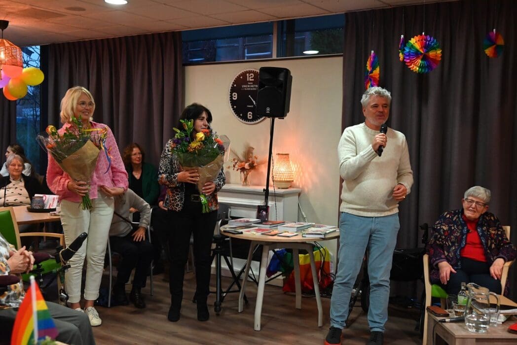 De zaal zat goed vol en de versiering in regenboogkleuren gaf aan om wat voor middag het ging.