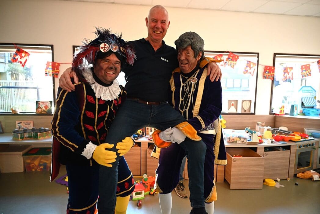 Sinterklaas had heel veel cadeautjes bij zich en daar schijnt Nico Rijsbergen meer van te weten. Daarom namen de Pieten hem even op de schouders.