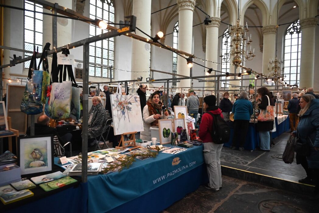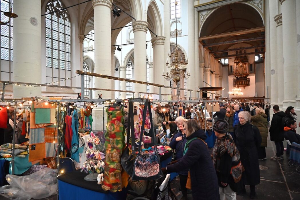 De Hooglandsekerk was omgetoverd tot een grote kunst en ambachtenmarkt.