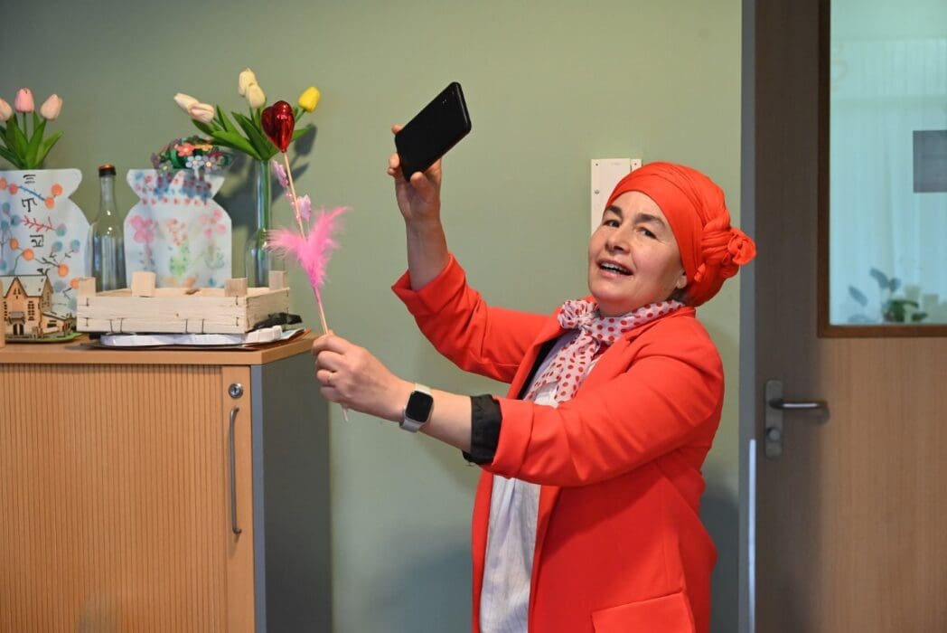 Haar collega welzijnsmedewerker Kamla Matoug filmde de rap natuurlijk want dit zie je niet dagelijks.