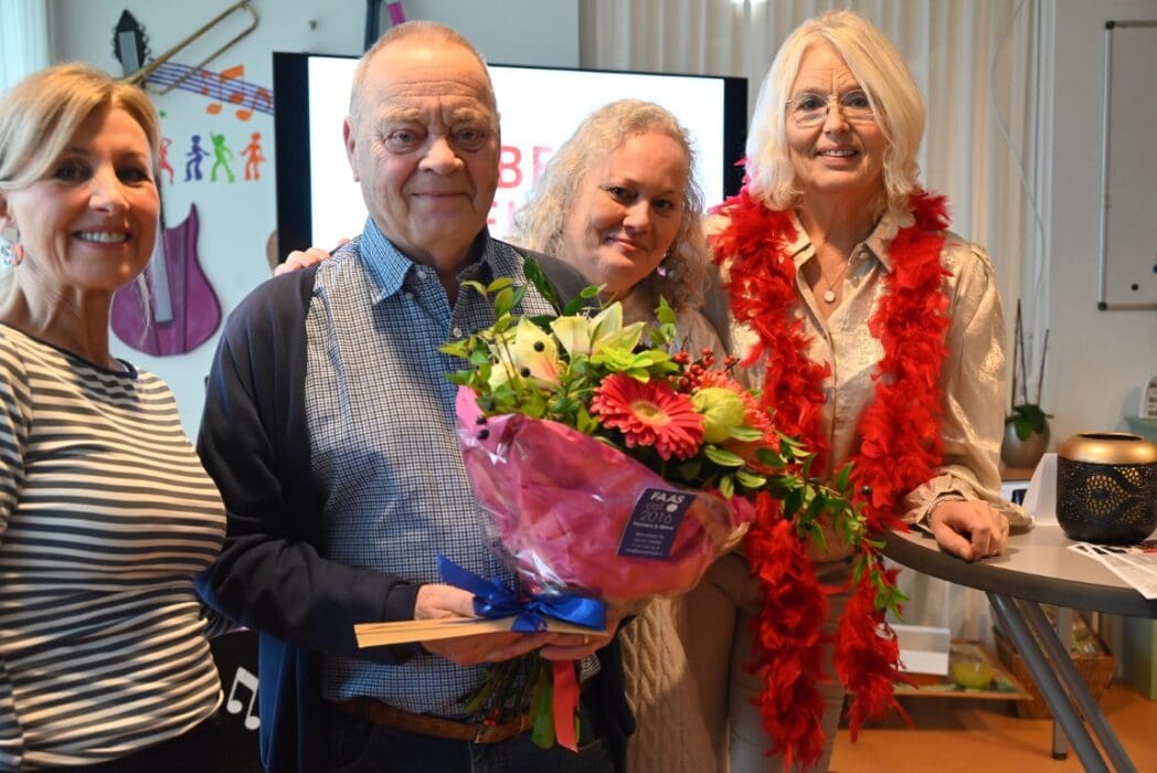 Bloemen, felicitaties en een cadeaubon voor de jubilaris.