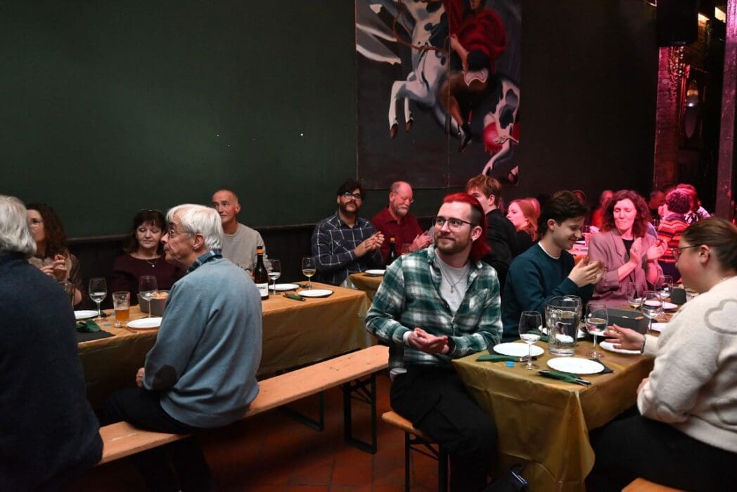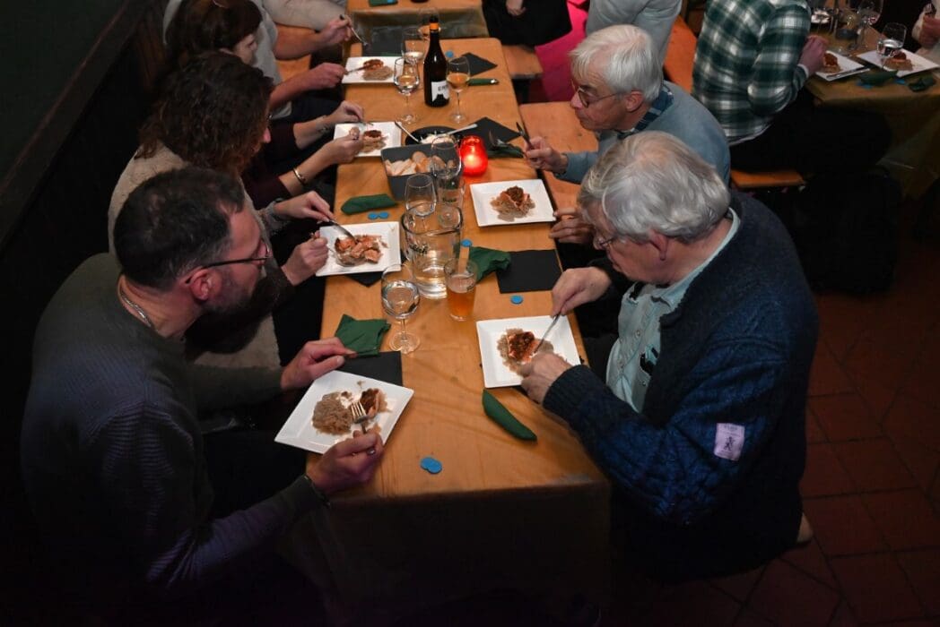 De bedoeling van het diner was samenkomen en elkaars wereld een beetje leren kennen. Er werd dan ook aan de leden gevraagd tussen de gasten te gaan zitten en de gesprekken aan te gaan.