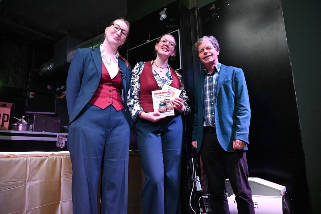 Voor de studenten had Frank een boekje bij zich “Genadebrood, de onstuitbare opmars van de voedselbanken’. Het boekje beschrijft de opmars en de noodzaak van de voedselbanken in Nederland.