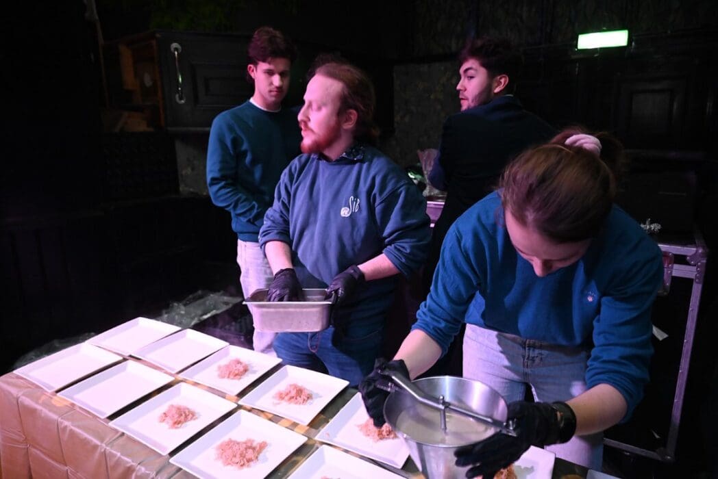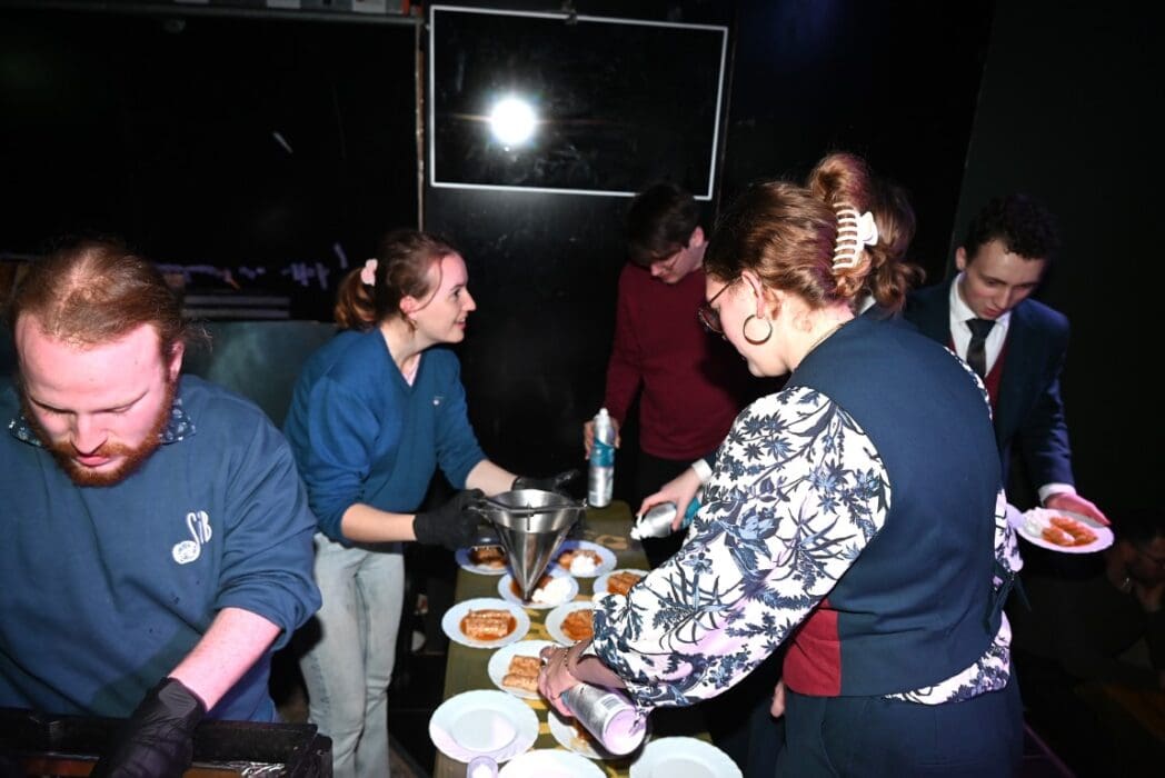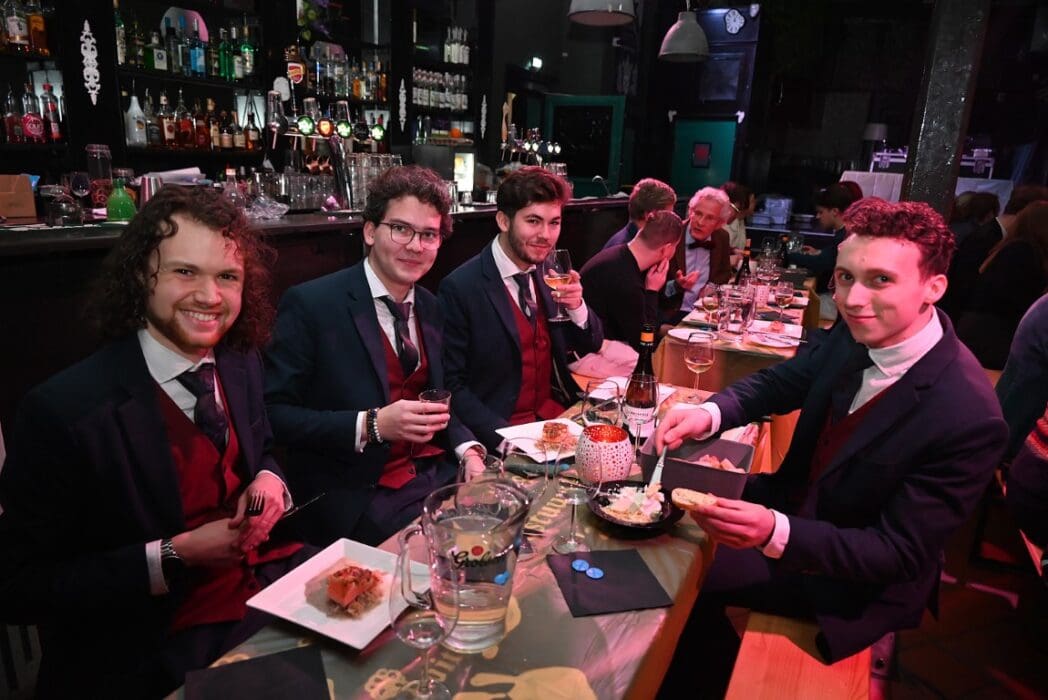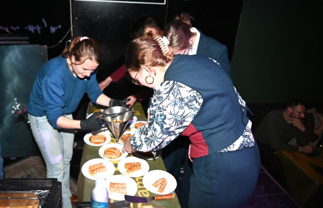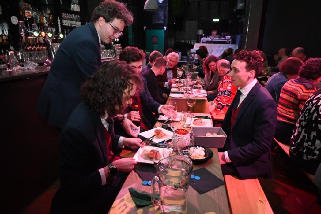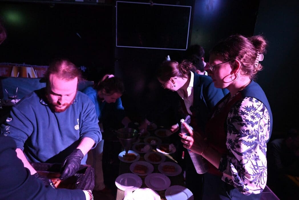 De bedienende studenten aten na het voorbereiden en uitserveren natuurlijk zelf ook een hapje.