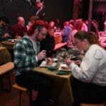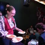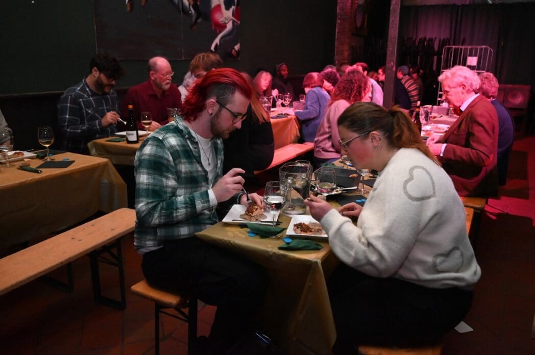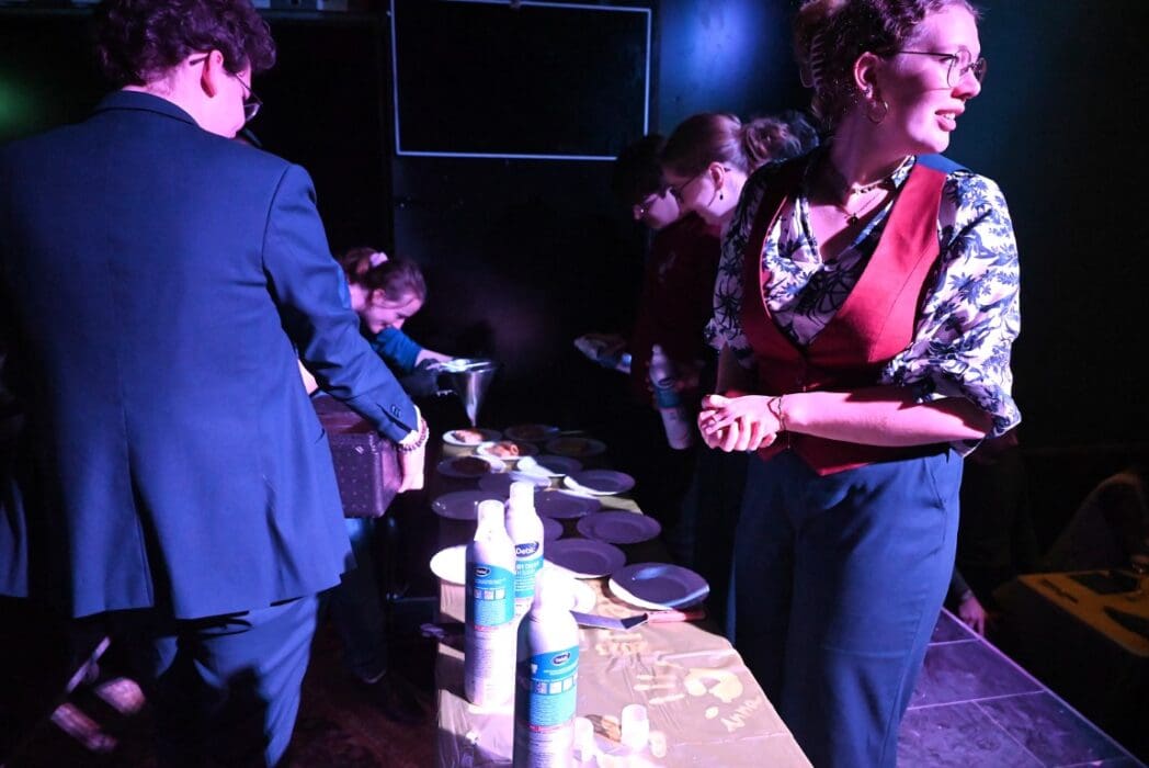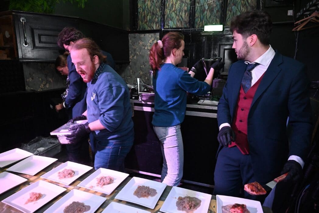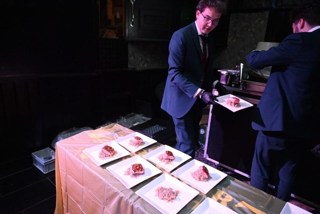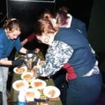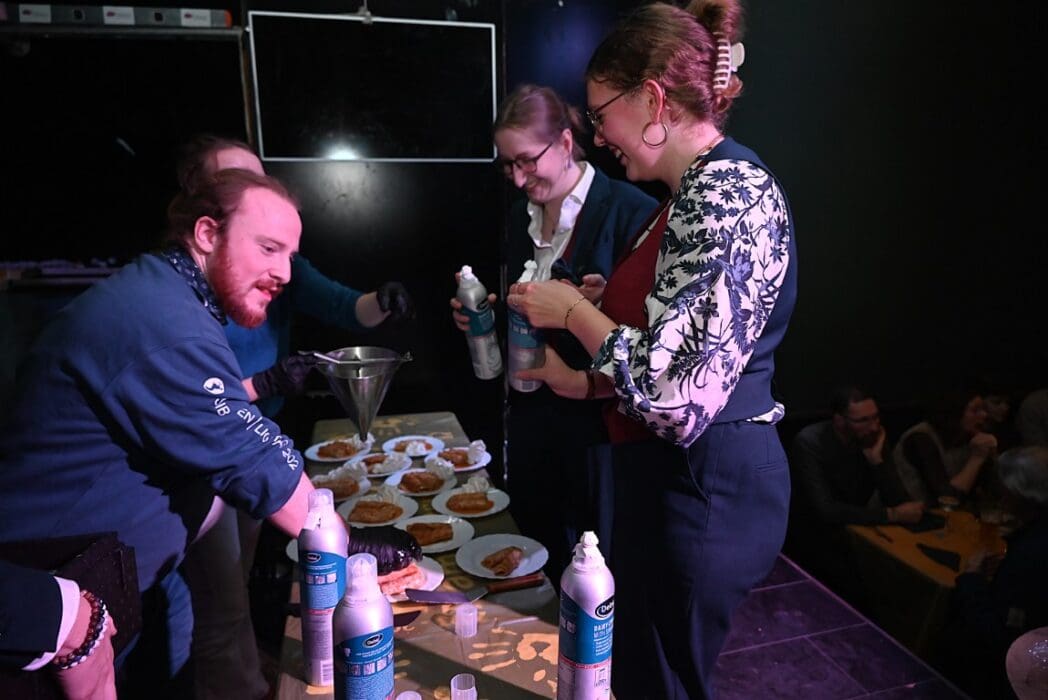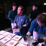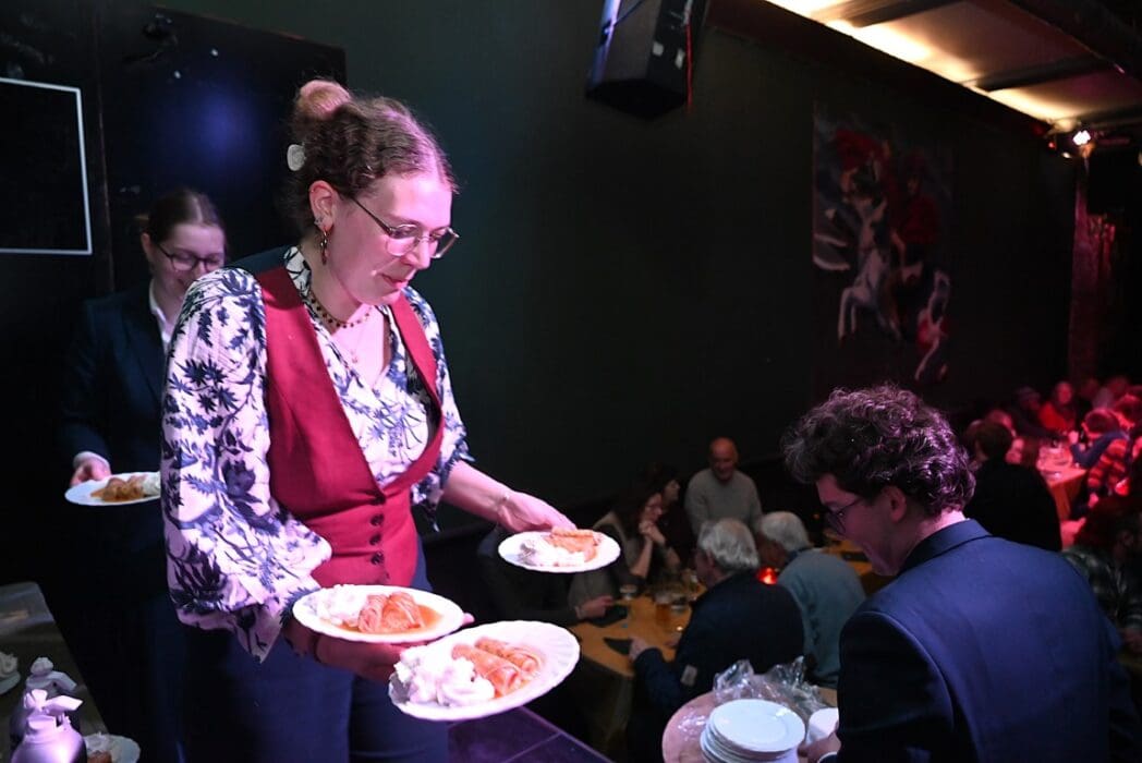 De bedienende studenten aten na het voorbereiden en uitserveren natuurlijk zelf ook een hapje.