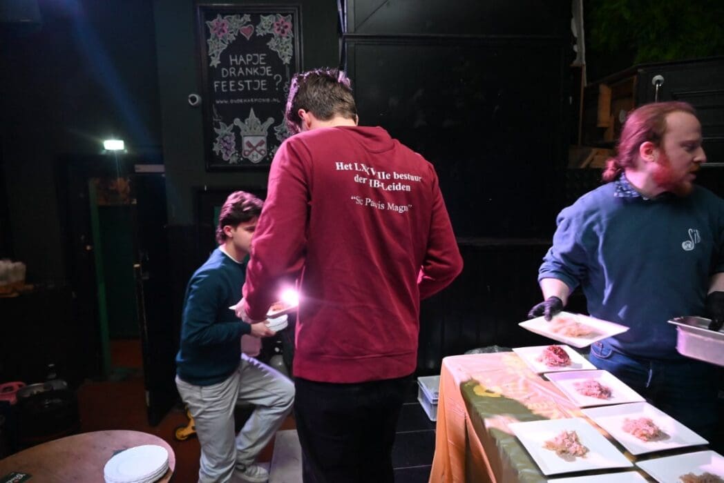 Studentenvereniging SIB is niet een van de bekendste studentenverenigingen, toch bestaan ze al 78 jaar en hebben 450 leden. Voluit heten ze ‘Studentenvereniging voor Internationale Betrekkingen’. Kort gezegd, een vereniging die de Leidse student de wereld laat zien en de wereld naar de student brengt. Op de website is alle informatie te vinden. Naast internationale betrekkingen verliezen ze ook de lokale wereld niet uit het oog, vandaar dat ze gisteren een diner voor cliënten en enkele vrijwilligers van de Voedselbank Leiden organiseerden. De maaltijd werd bereid door restaurant Woods in Leiden, maar de hele verzorging werd door de studenten zelf gedaan. Dat begint bijvoorbeeld met het uitzoeken van het bestek wat beschikbaar werd gesteld door Partyverhuur Leiden.