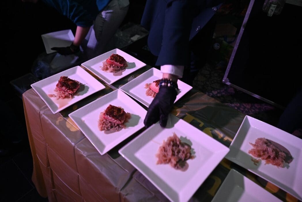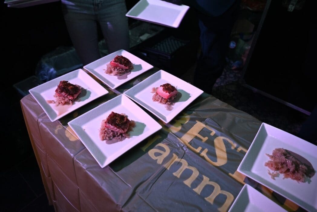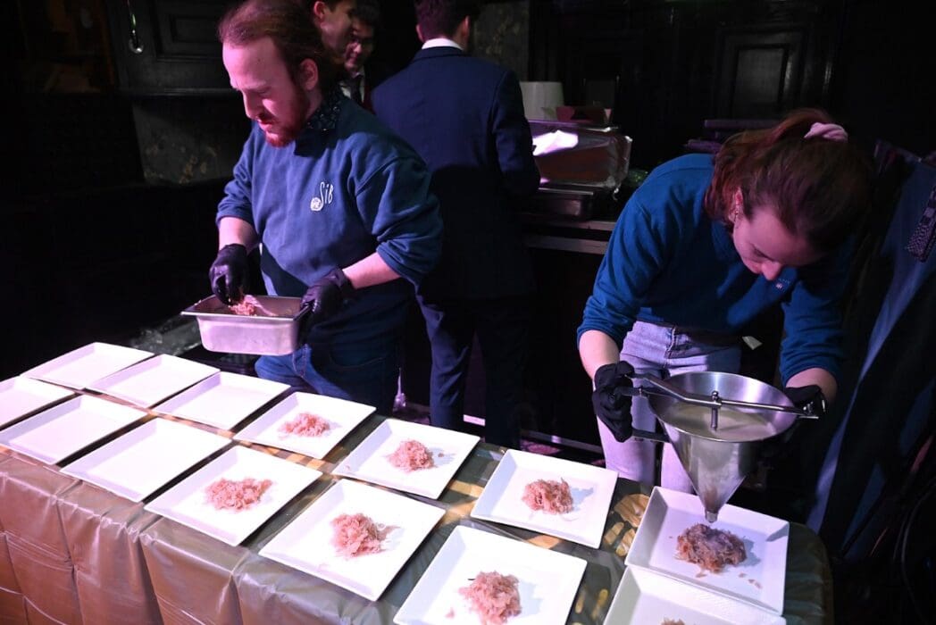 Restaurant Woods bracht het diner naar het Breehuis en de studenten maakten de borden mooi op.