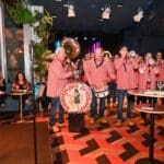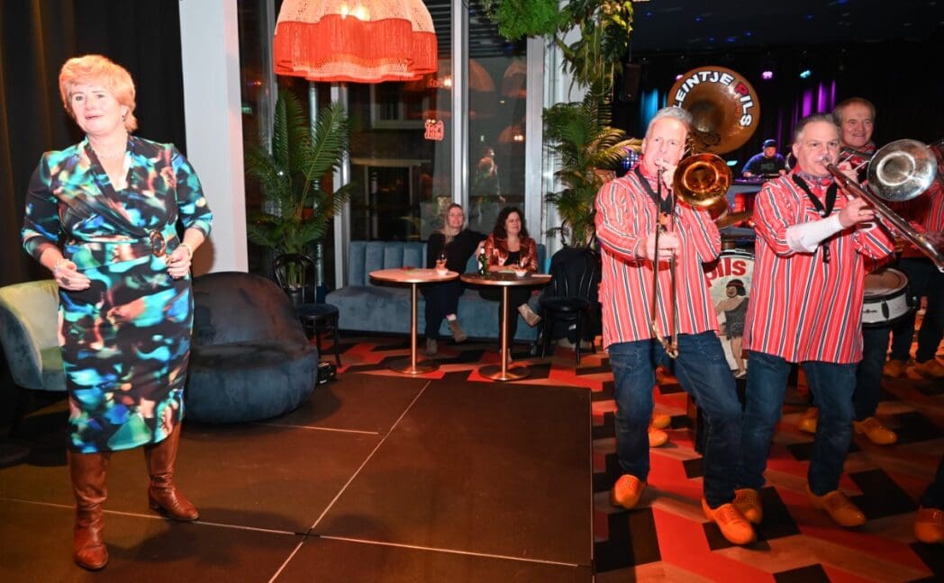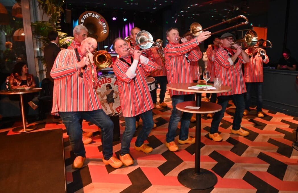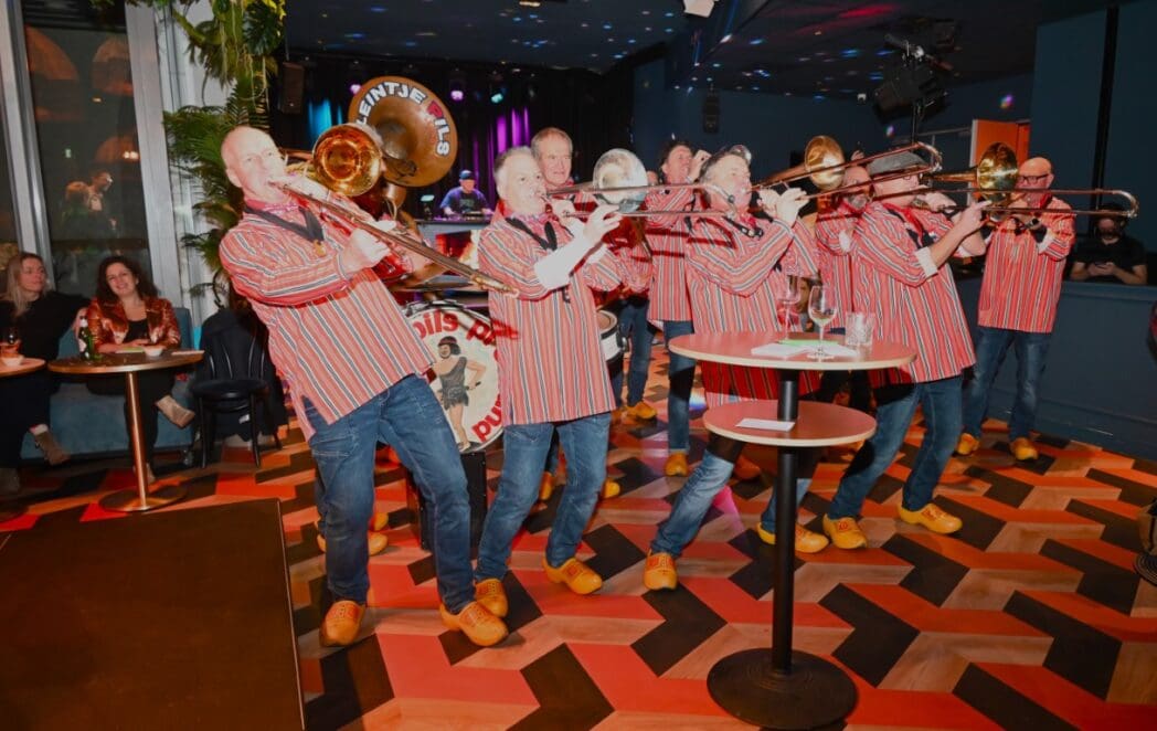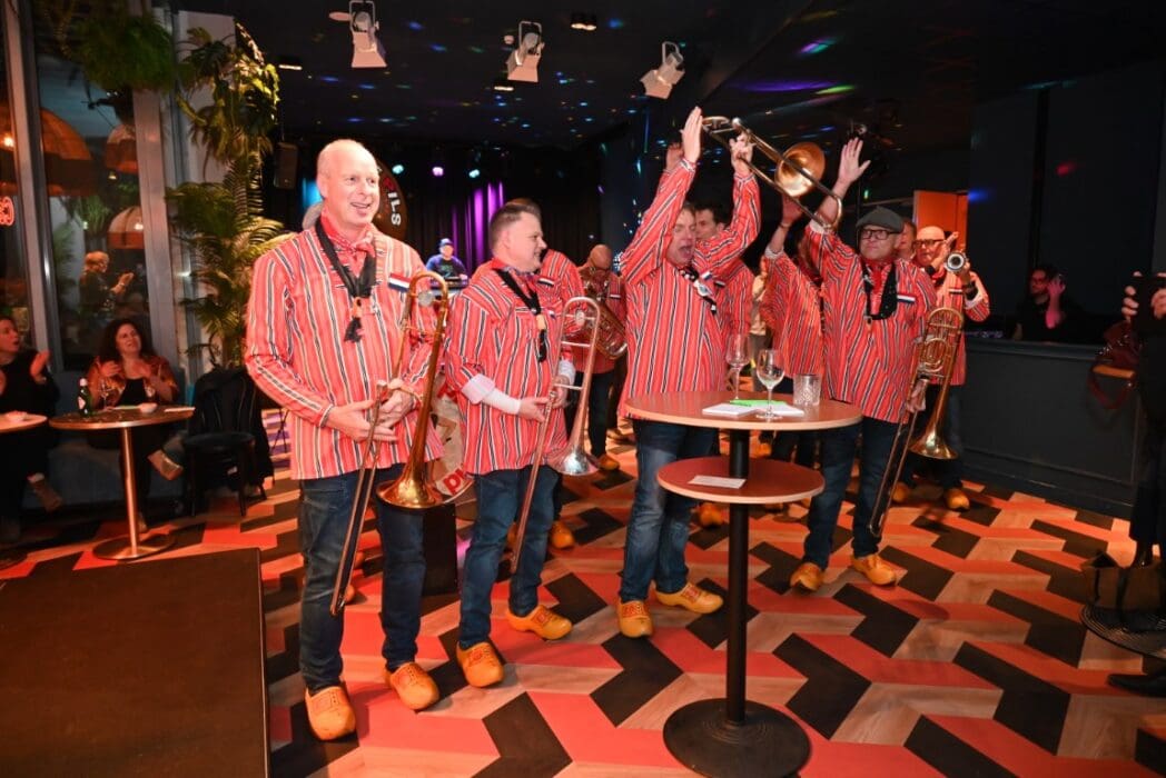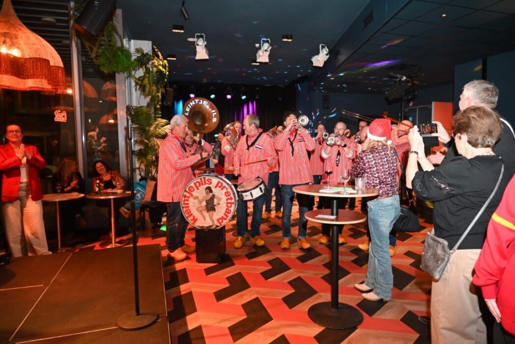Kleintje Pils had op de Drijvende IJsbaan gespeeld tijdens een benefiet voor het Willem Alexander Kinderziekenhuis. Afgelopen week belde ik grote tromspeler Ruud Bakker en vroeg of Kleintje Pils zin had na de ijsbaan nog even op het afscheid van Yvonne van Delft te spelen. Hij was er gelijk voor in en zou het de rest van de band nog even vragen. En zo liep ik dus met de band achter me aan van de ijsbaan naar Café Caat. Voorbijgangers stonden raar te kijken, wat doet een blaasorkest om 21 uur ’s avonds in het centrum 🙂