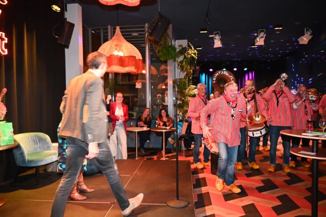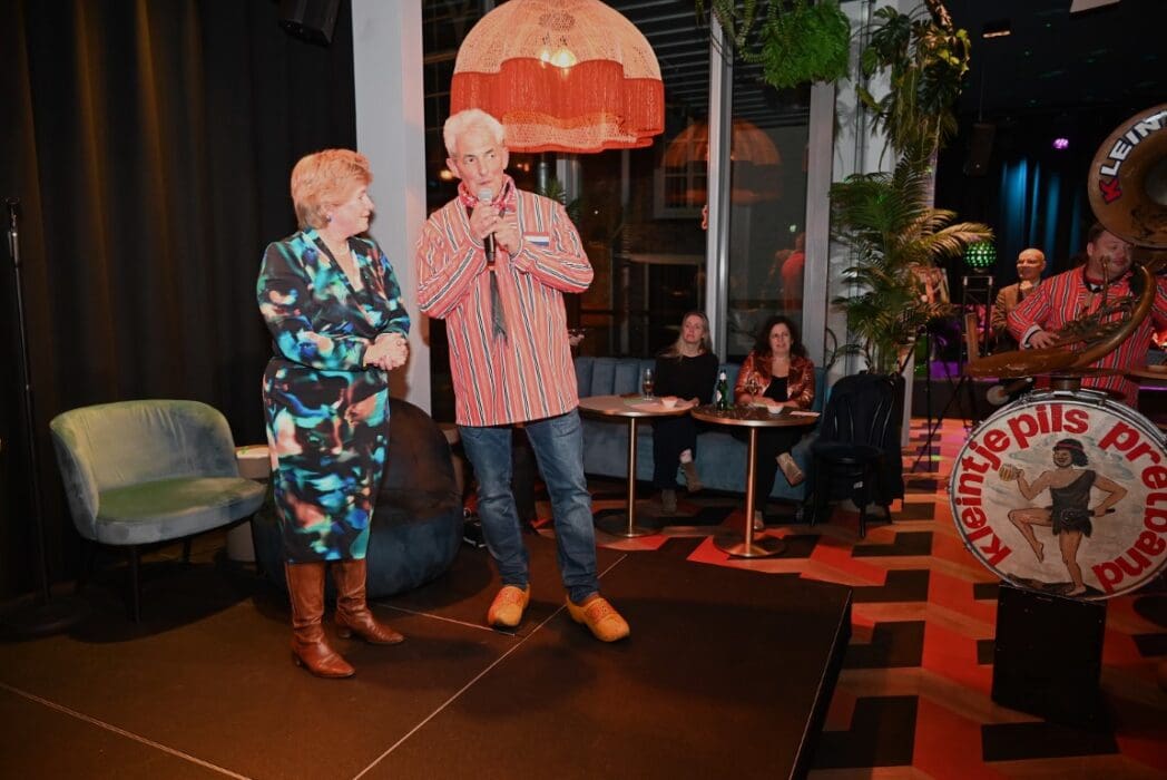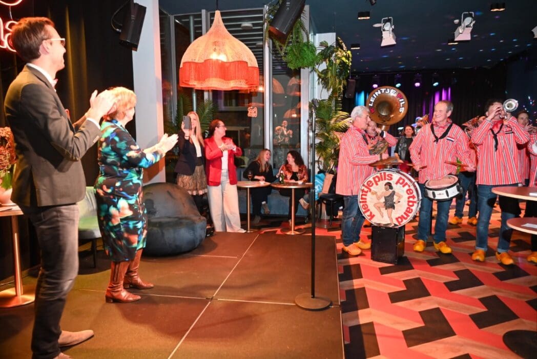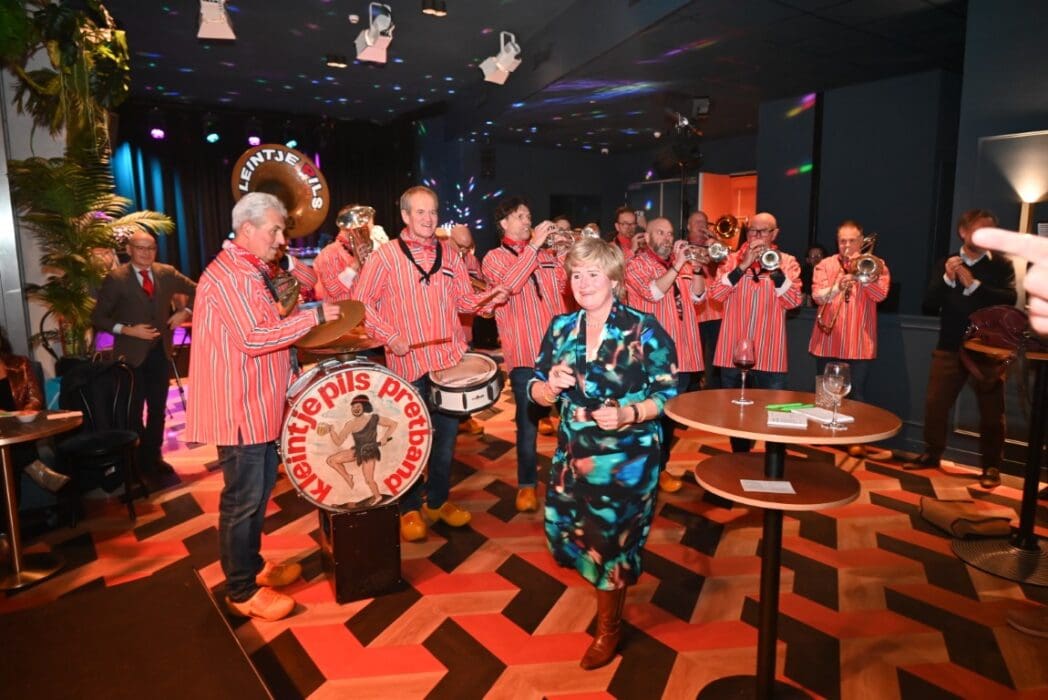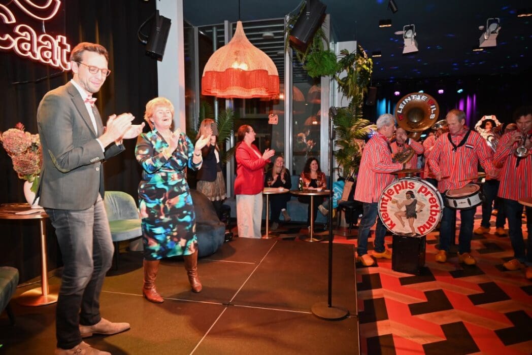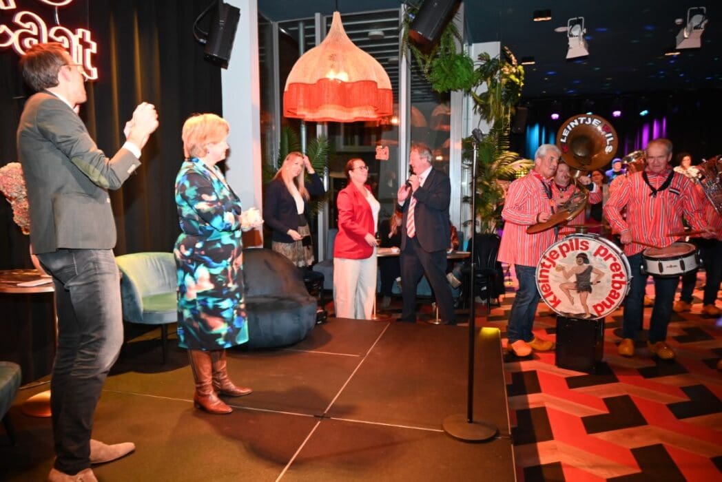 Terwijl wethouder Ashley North een afscheidsspeech hield voor Yvonne van Delft, werd hij volledig onverwacht onderbroken door Kleintje Pils die al spelend binnen kwam wandelen.
