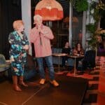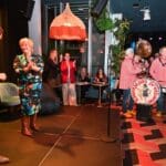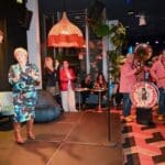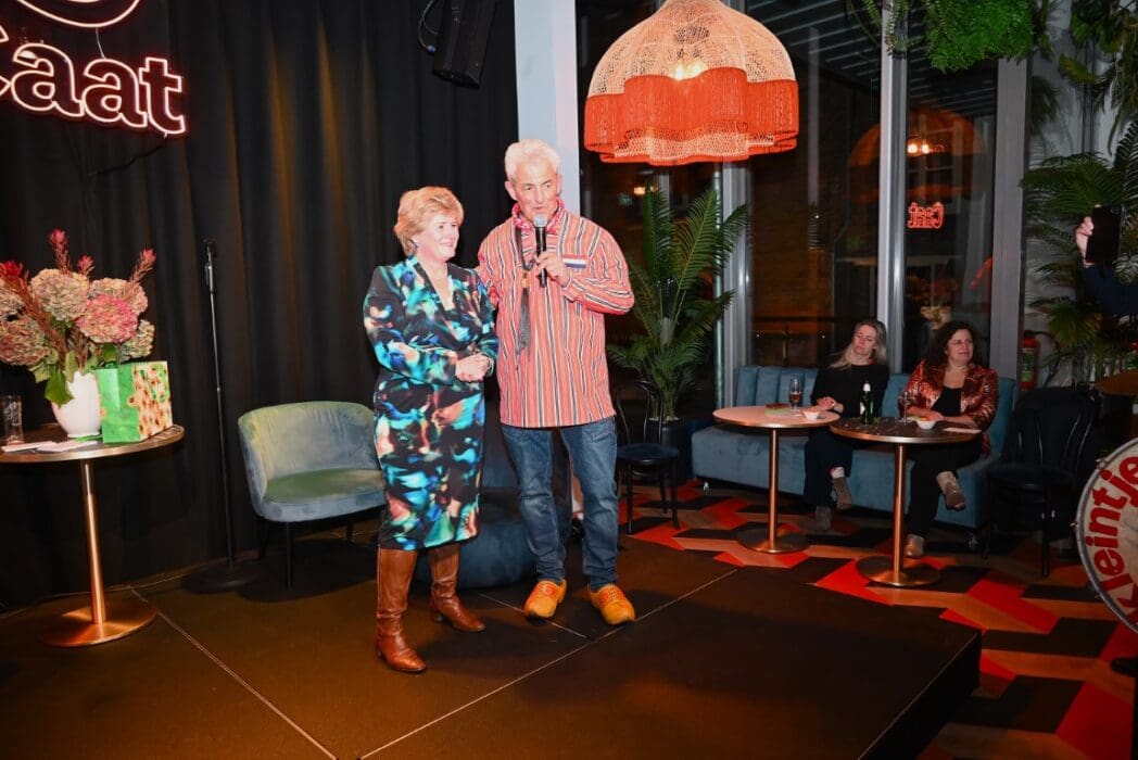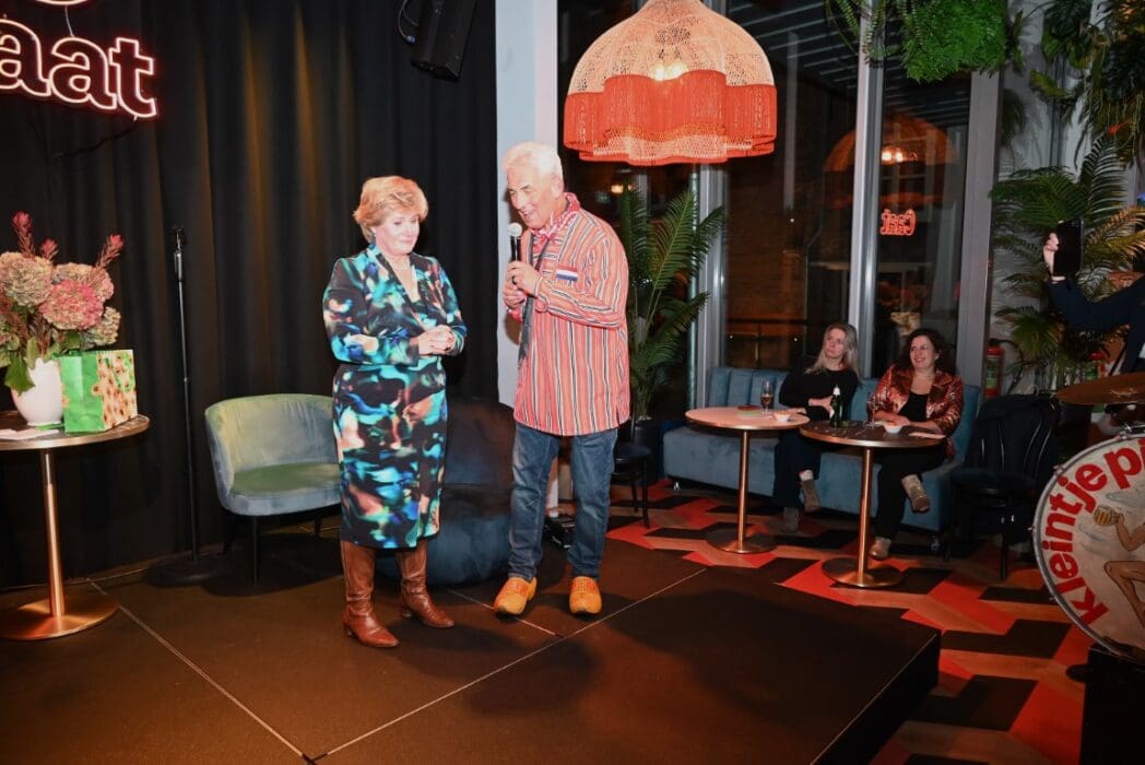 Yvonne wilde geen stijve receptie waarbij je op een plaats blijft staan dus liep ze rond. Nou ja dat was de bedoeling 🙂