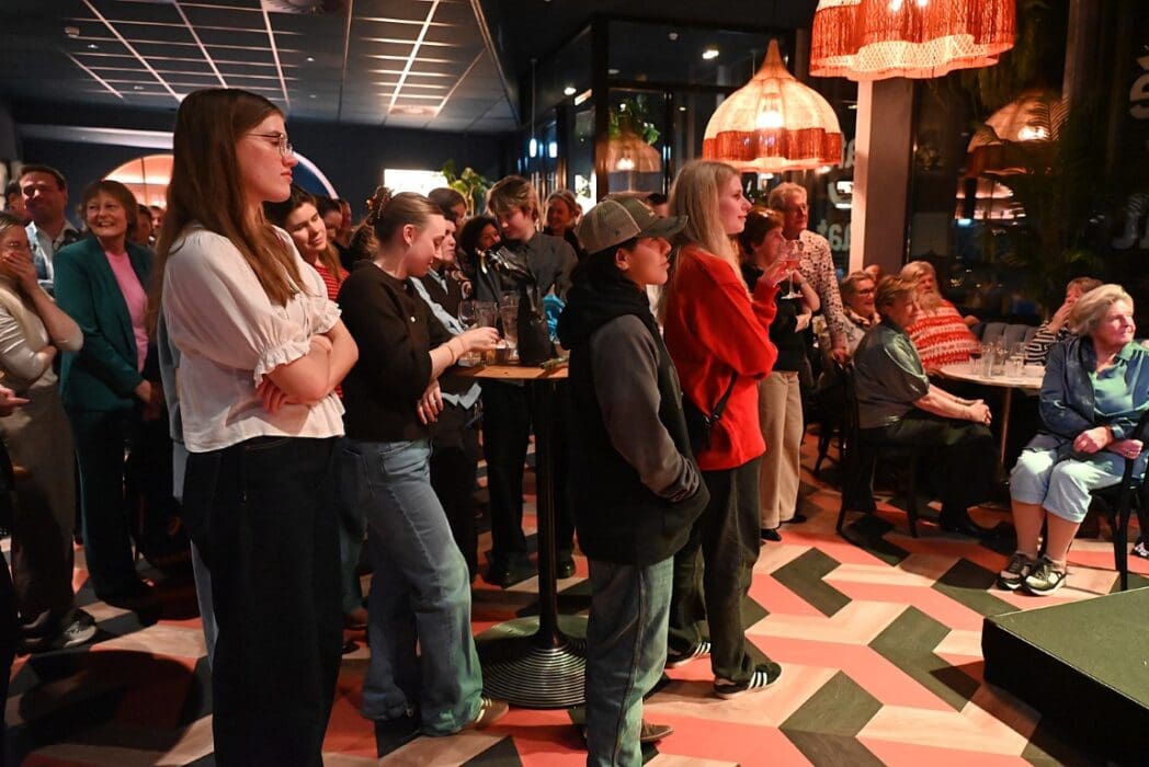 Na het optreden van Kleinte Pils kon Ashley North zijn toespraak af maken.